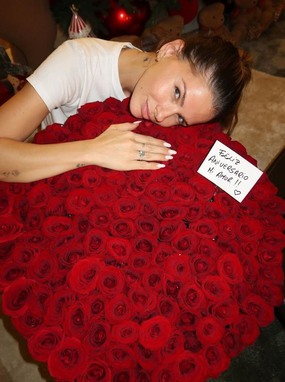 Ünlü futbolcu, nişanlısına büyük bir tektaş yüzük ve yaklaşık 200 gülden oluşan bir aranjman hediye etti.