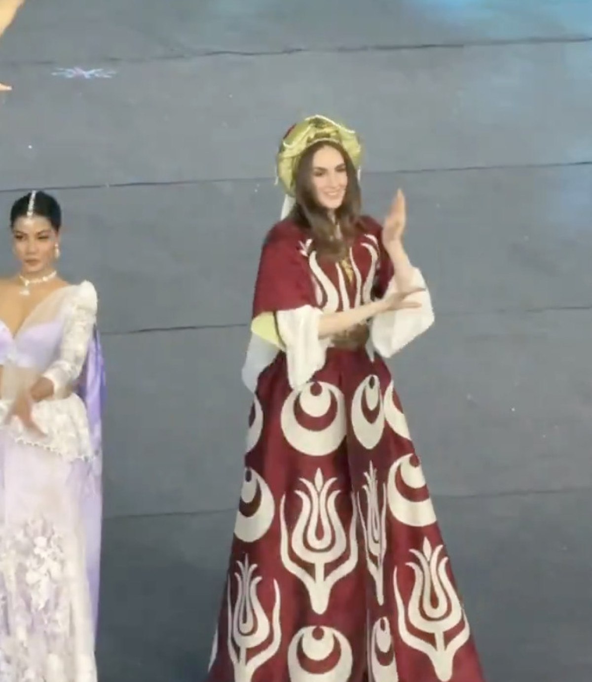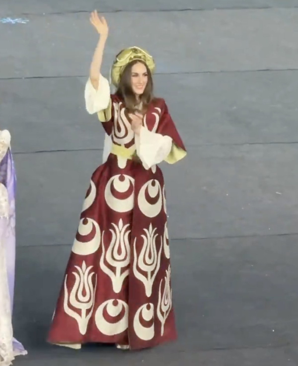 Kıyafetiyle Türk kültürünü yansıtmaya çalışan İdil Bilgen, açılış töreninde sahnede Hint figürlerinden esinlendiği dansını yaptı.