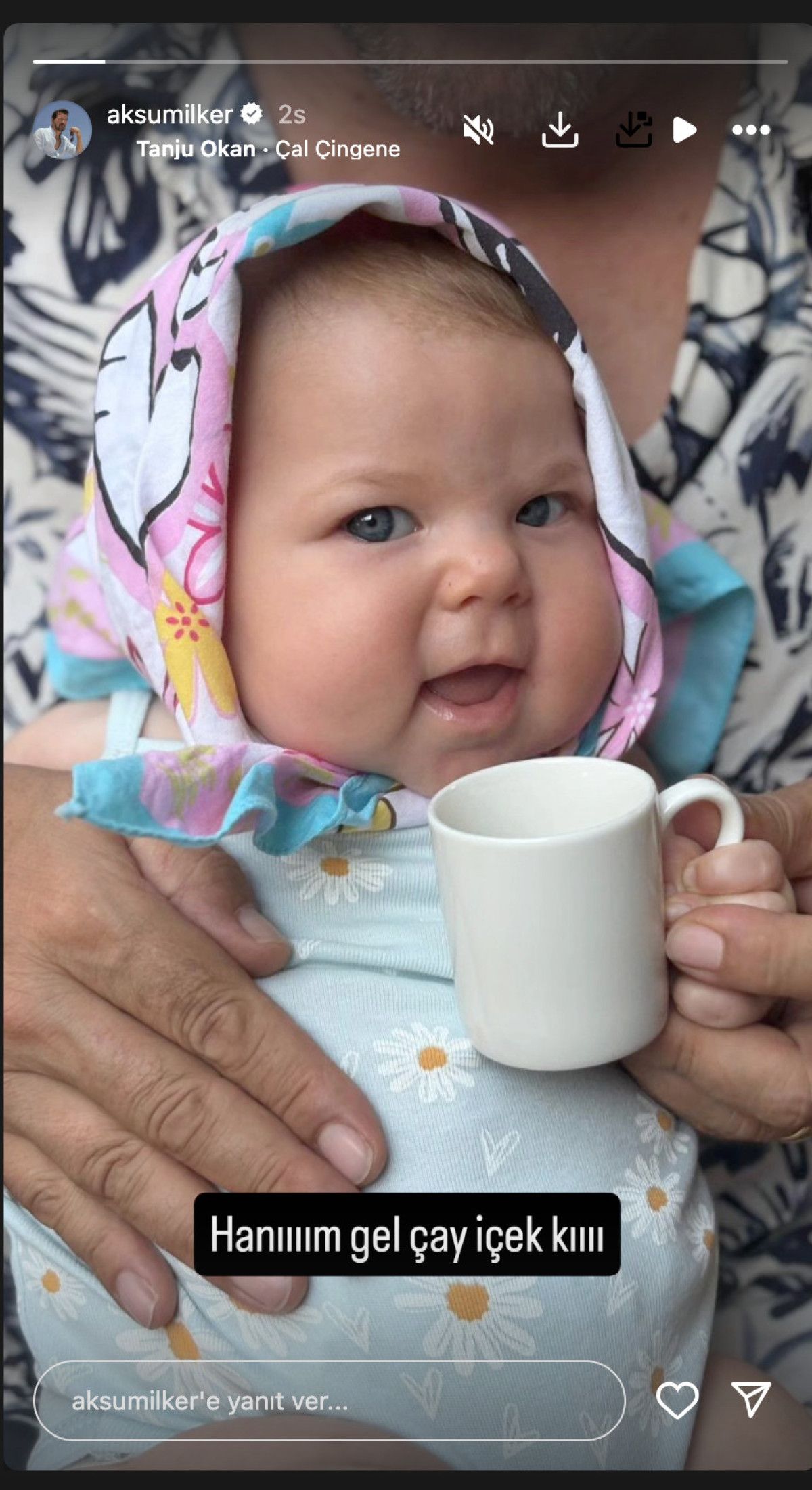 Aksum kızıyla yeni bir paylaşım daha yaptı. Minik Lila ile çay keyfi yapan Aksu paylaşımına esprili bir şekilde “Hanım gel çay içek kıı” notunu düştü.