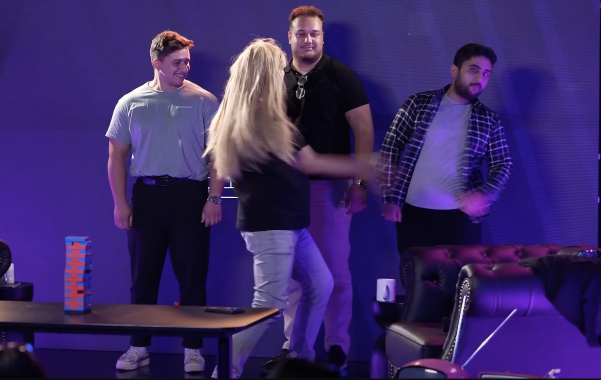 Özel hayatına dair açıklamalarda bulunan Ayrık, Jenga oyununda Hadise’nin konserinde yaptığı çok konuşulan tokat dansını yaptı.