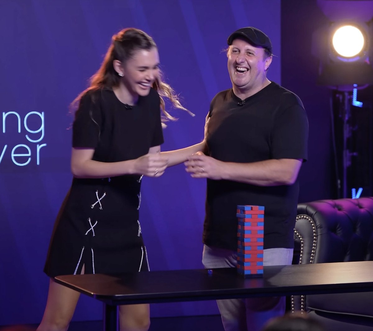 Özel hayatına dair açıklamalarda bulunan Ayrık, Jenga oyununda Hadise’nin konserinde yaptığı çok konuşulan tokat dansını yaptı.