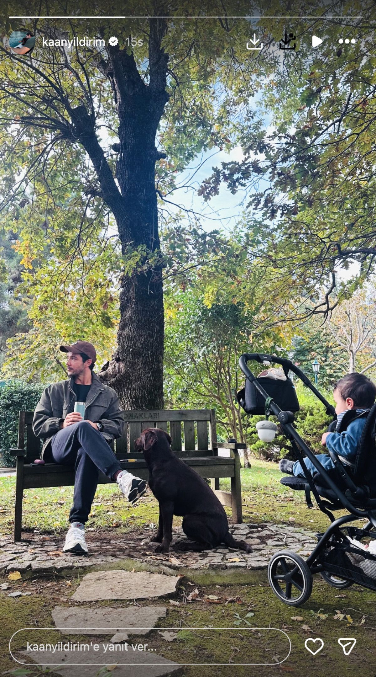 Kaan Yıldırım, daha sonra da oğlu Fikret Hakan ile parkta karesini sevenleriyle paylaştı. O fotoğraf da yoğun ilgi gördü.