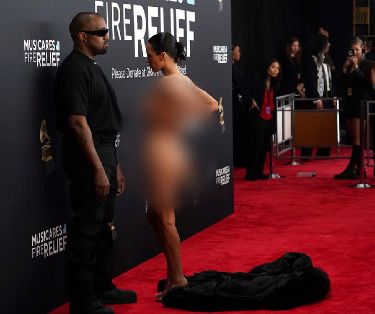 30 yaşındaki tasarımcı Bianca Censori’nin iç çamaşırı giymediği, tamamen transparan bir elbise tercih ettiği görülürken, bu görüntüler sosyal medyada büyük tepki topladı.