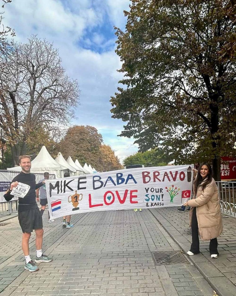 46. İstanbul Maratonu’nda eşi Mike Schrama’yı desteklemek için katılan Karsu, hazırladığı pankartla bebeğinin cinsiyetini açıkladı.