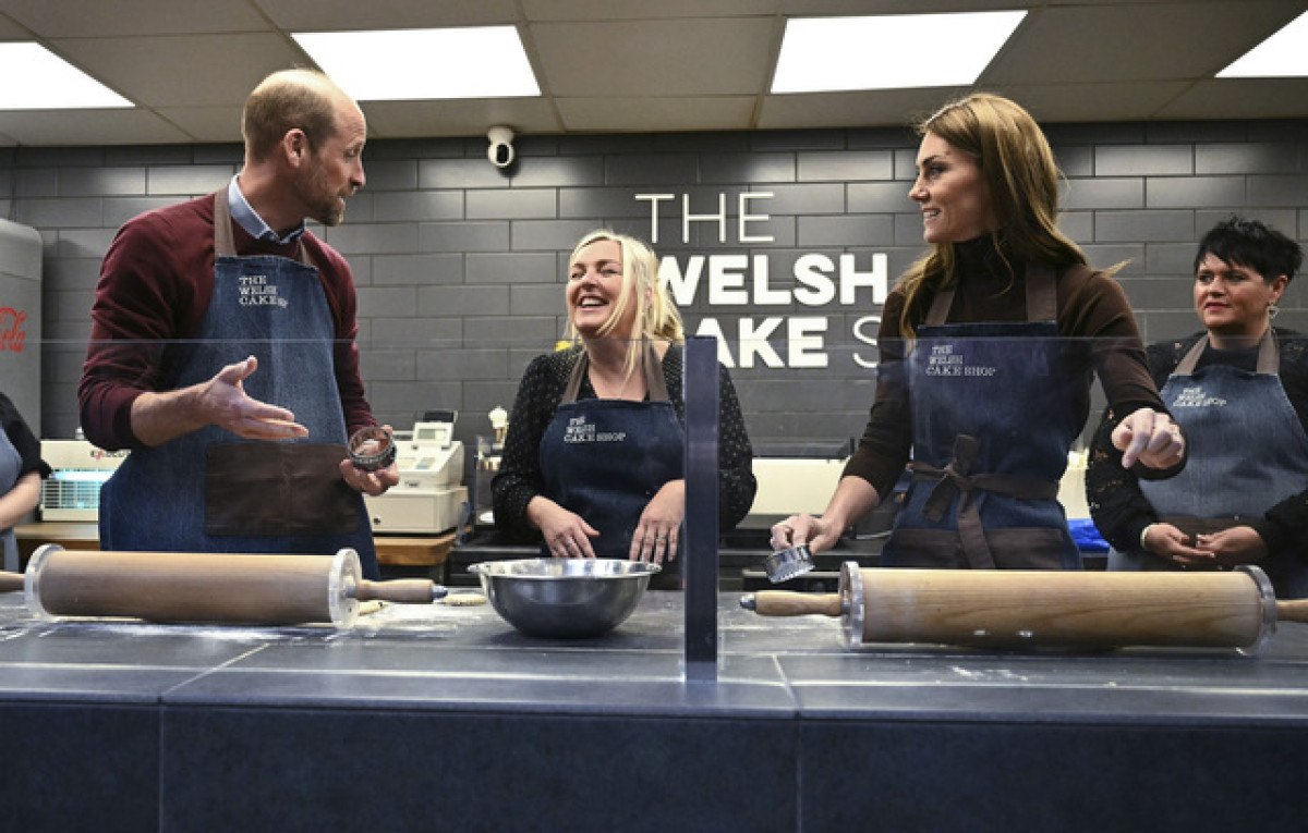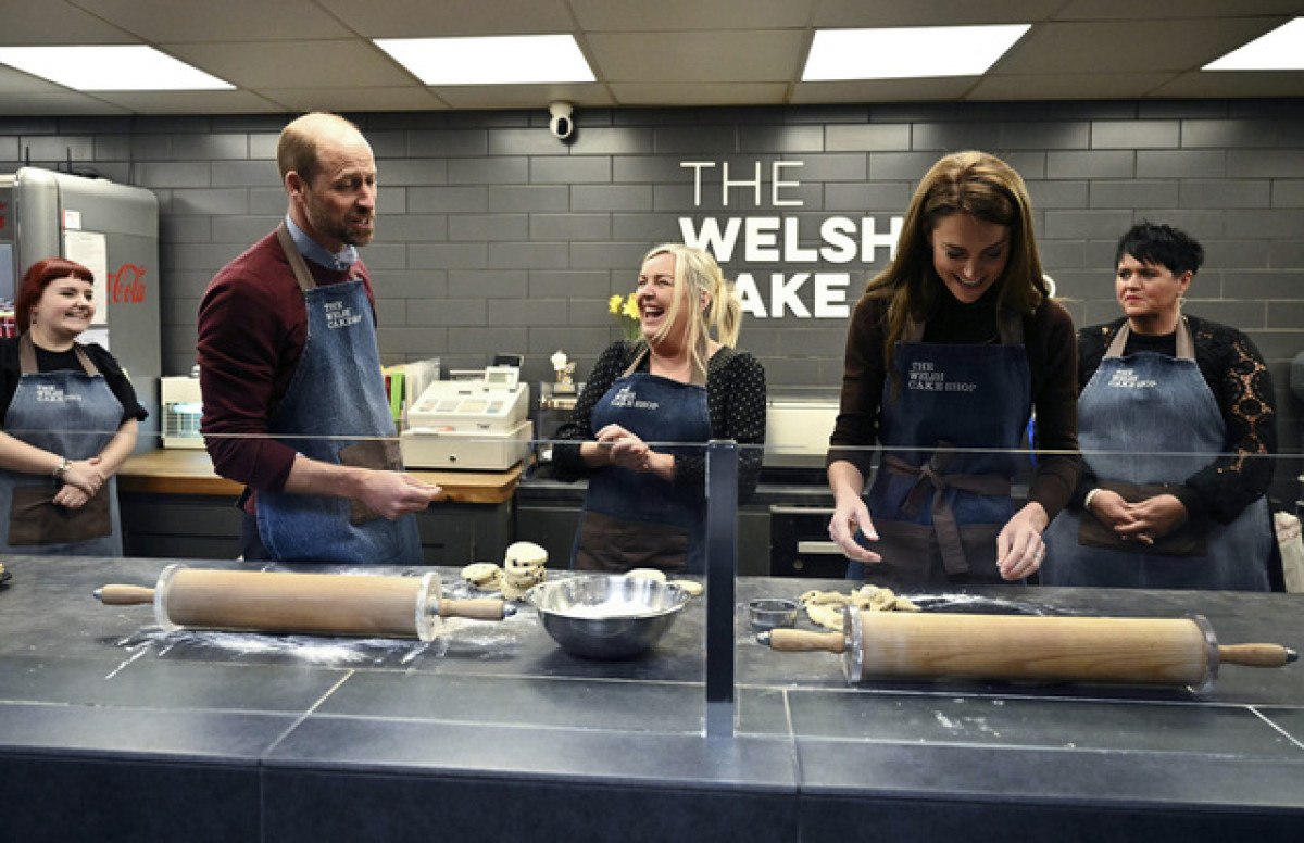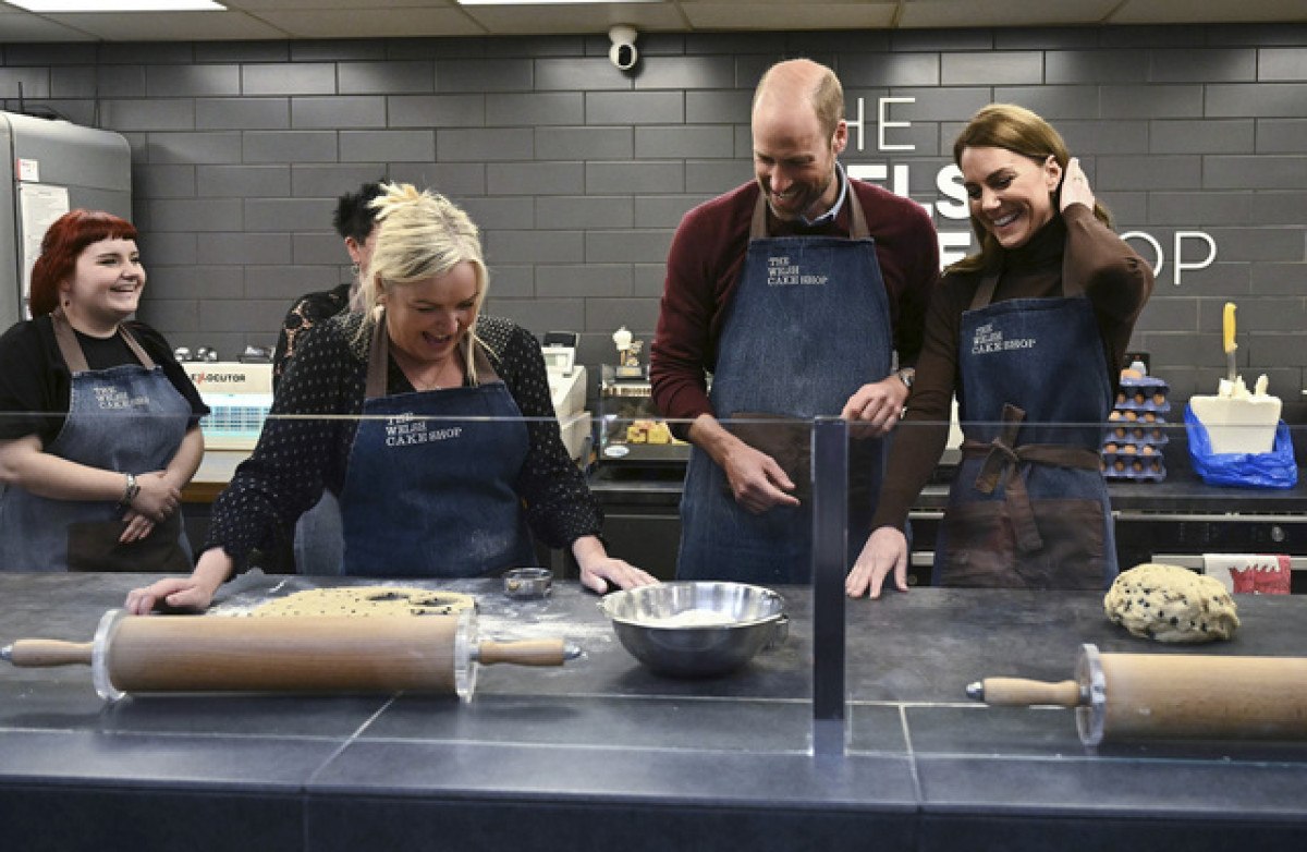 Geçen yıl şiddetli sel felaketine uğrayan bir Galler kasabası olan Pontypridd’e giden kraliyet çifti, mutfakta geleneksel Galler keki yapmayı denedi.