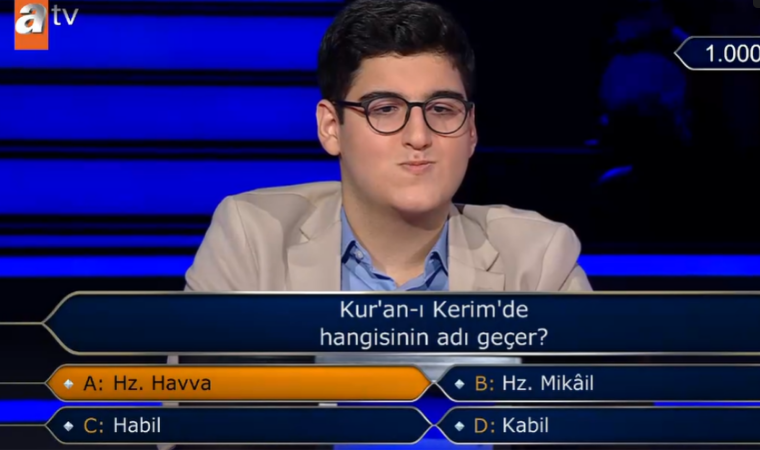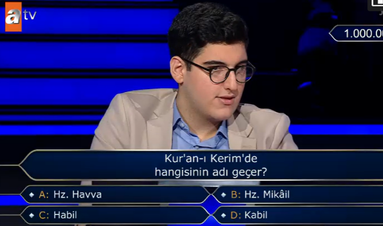 Hz Mikail’in adının Kur’an’da geçmesi nedeniyle cevap B şıkkı. A şıkkını seçen yarışmacı yarışmadan yarı finalde elenerek 50.000 değerindeki ödülün sahibi oldu.