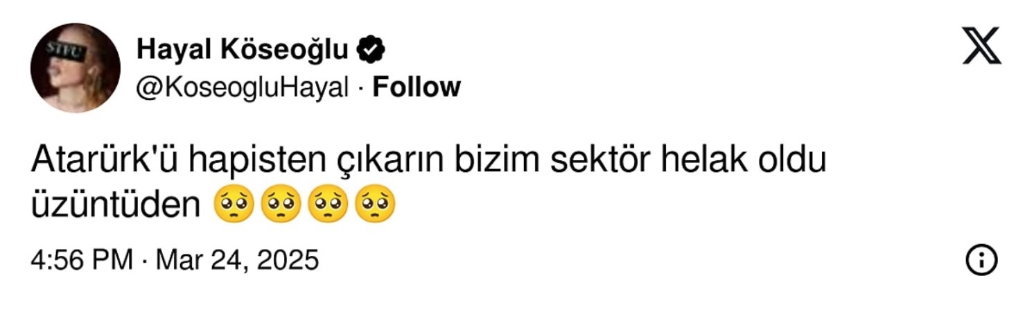 Öyle ki bazı oyuncular da kendi meslektaşlarına tepki gösteriyor. Hayal Köseoğlu’nun bu konudaki paylaşımı gündem olmuştu.
