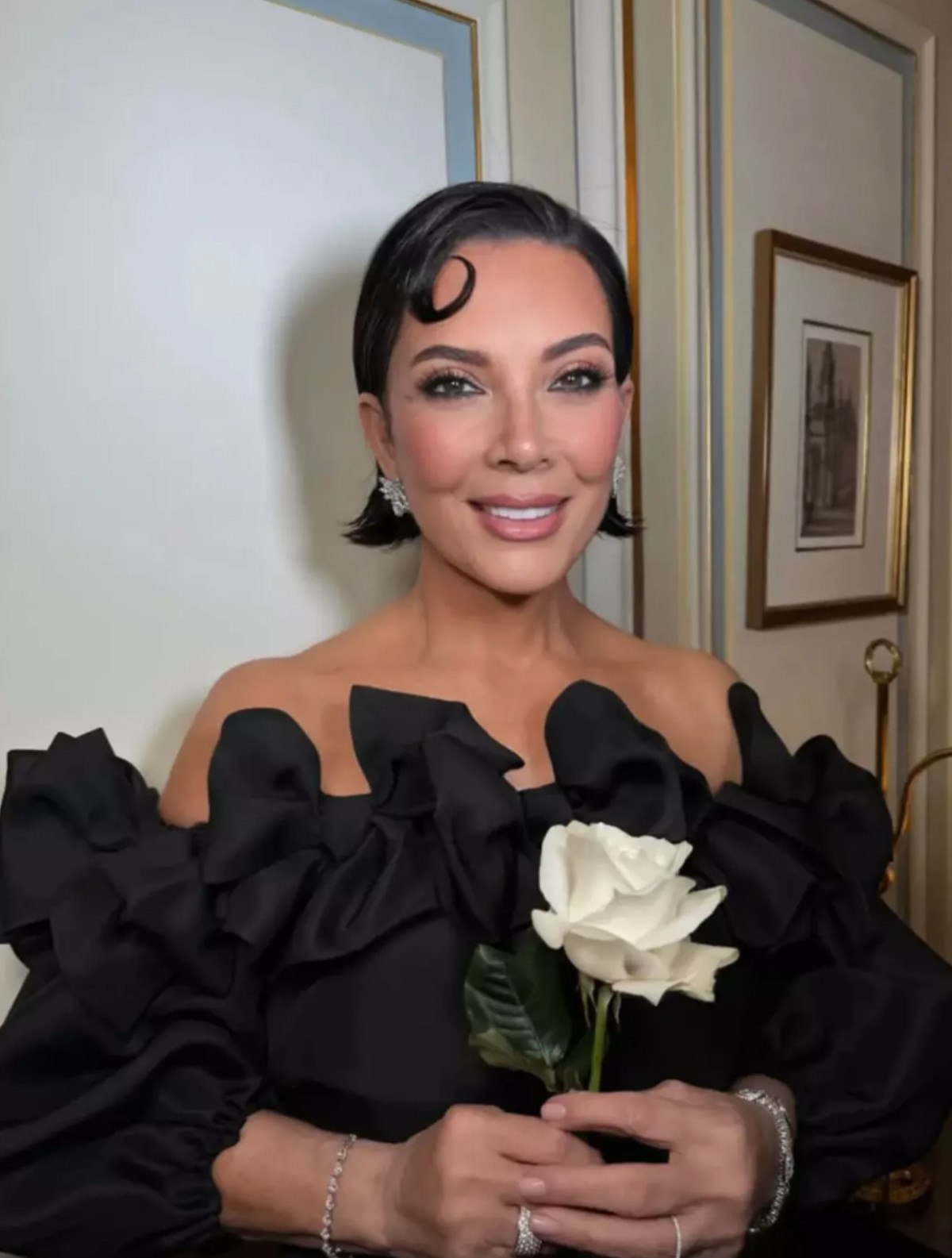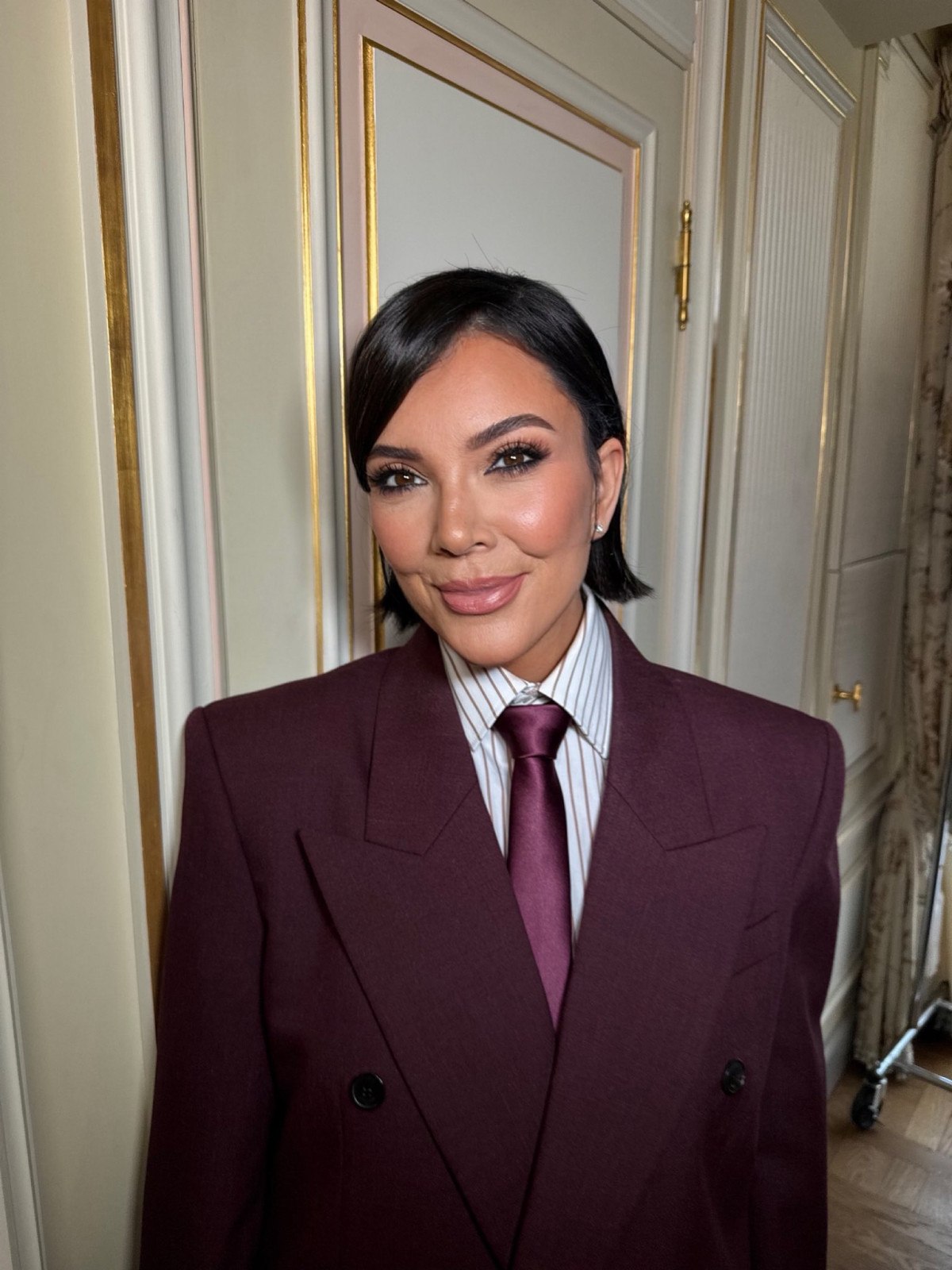 Geriye taranmış saçları, bol kesim ceketi ve güneş gözlükleri klasik Kris tarzıydı. Ancak porselen gibi yanakları, gergin çene hattı ve içten gelen bir ışıltıya sahip cildi ile bambaşka biriydi.