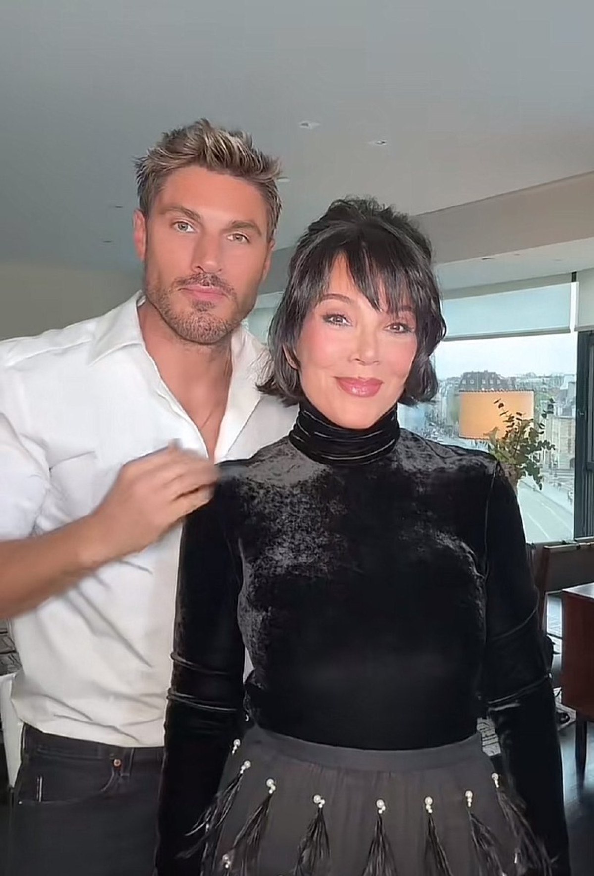 Geriye taranmış saçları, bol kesim ceketi ve güneş gözlükleri klasik Kris tarzıydı. Ancak porselen gibi yanakları, gergin çene hattı ve içten gelen bir ışıltıya sahip cildi ile bambaşka biriydi.