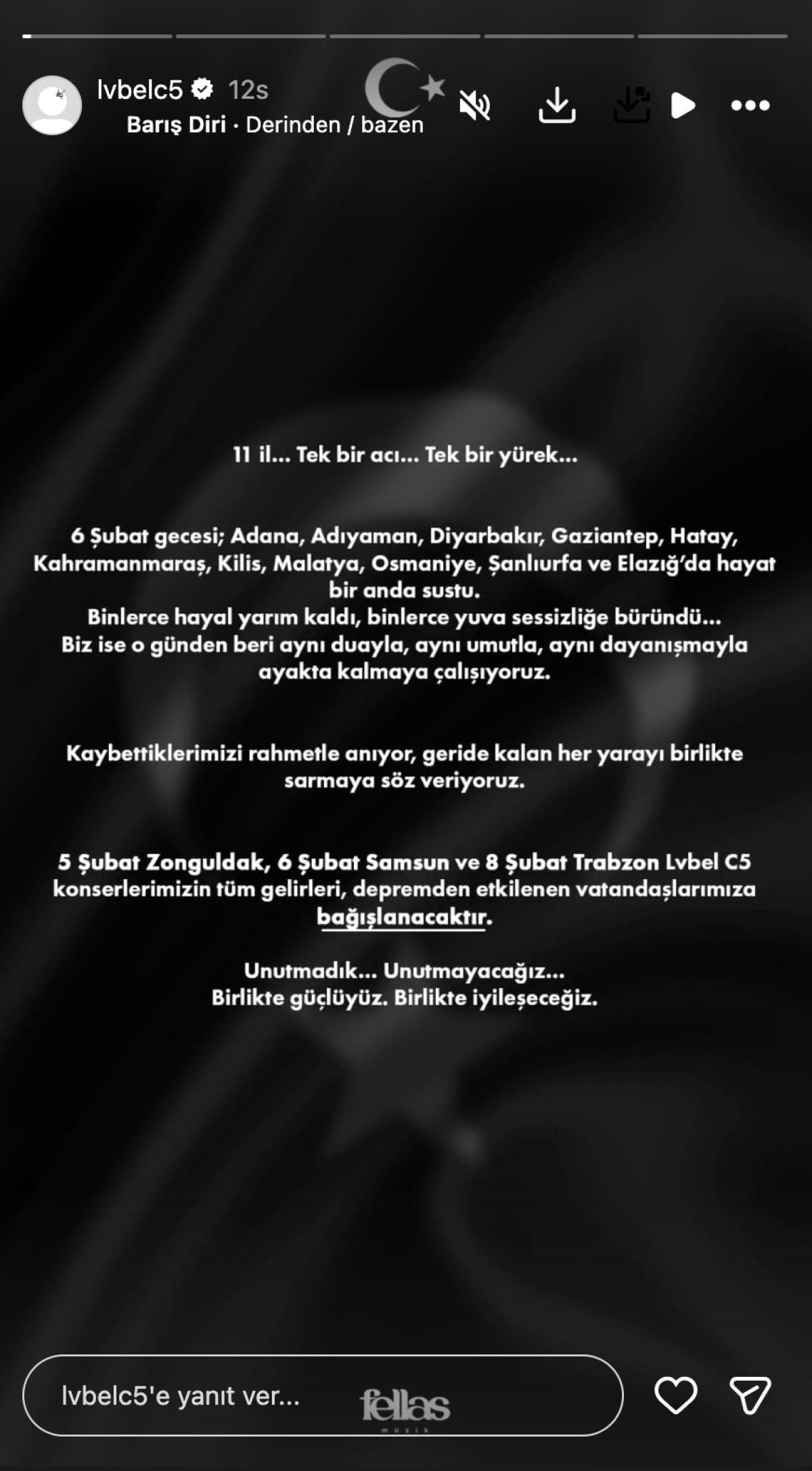 5 Şubat Zonguldak, 6 Şubat Samsun ve 8 Şubat Trabzon’daki konserlerimizin tüm gelirleri, depremden etkilenen vatandaşlarımıza bağışlanacaktır. Unutmadık… Unutturmayacağız… Birlikte güçlüyüz, birlikte iyileşeceğiz”