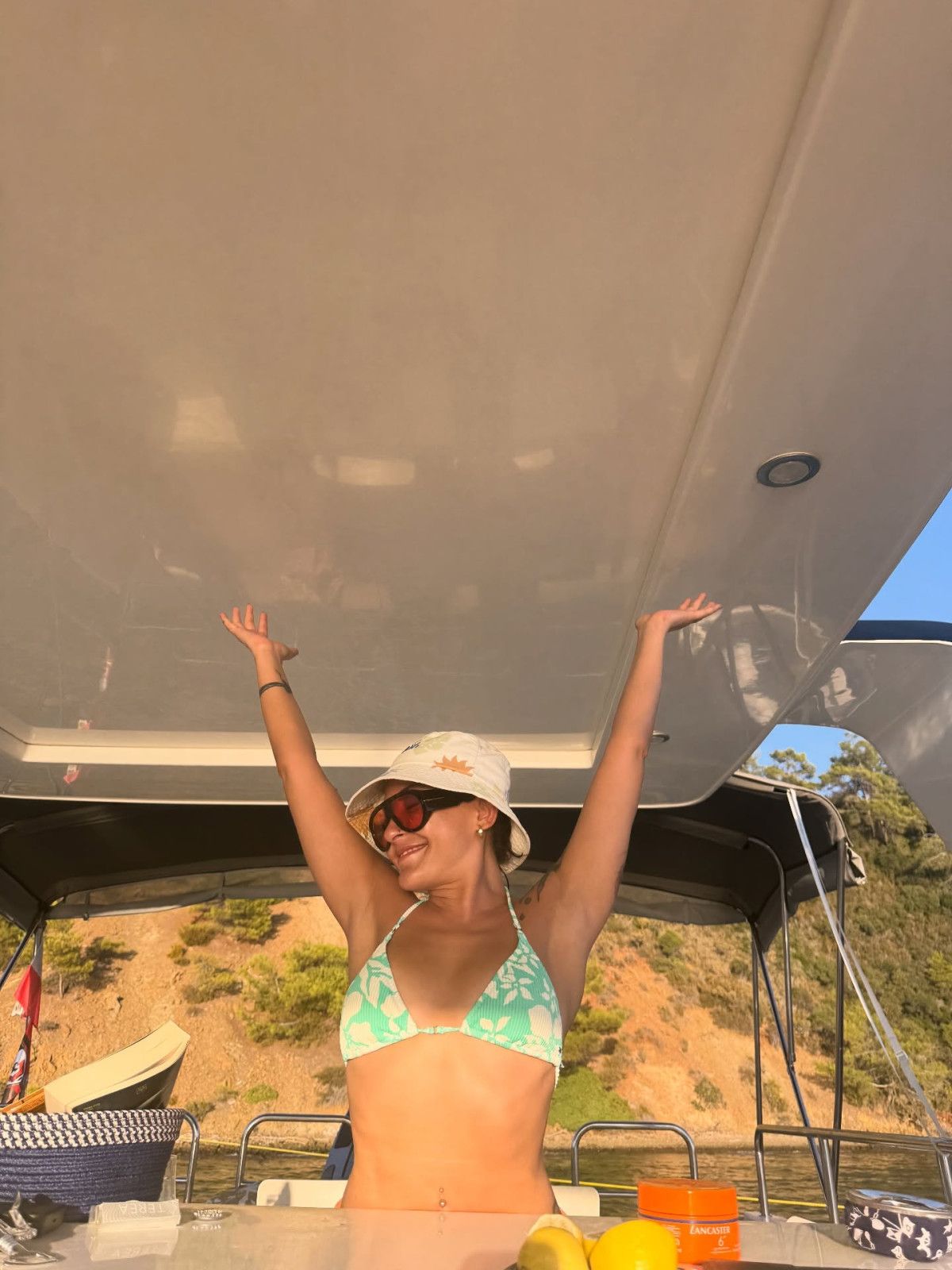 Teknede keyif yapan Mosso “Yazın sonunda tatil yapabildim şükür. Bu arada yok fotoşop yapacağım cart curt diye hiç günlük hayatımı paylaşmıyorum. Artık umurum değil yapıştırıp geçeceğim” dedi.
