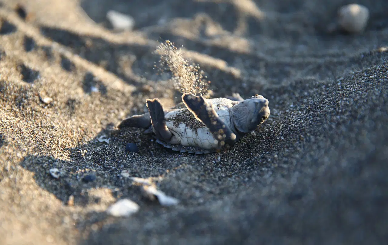 Anaç kaplumbağaların, mayıs ayından itibaren Davultepe 100. Yıl Tabiat Parkı’ndaki kumsala yaptığı yuvalarda kuluçka dönemini tamamlayan yavrular, yumurtalarından çıkmaya başladı.