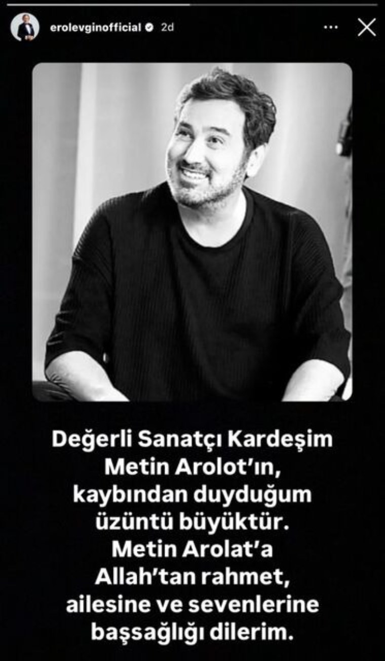 “Türk pop müziğinin değerli isimlerinden Metin Arolat’ın vefatını üzüntüyle öğrendik. Sanatçının ailesine, sevenlerine ve sanat camiamıza başsağlığı diliyoruz. Mekânı cennet olsun.”