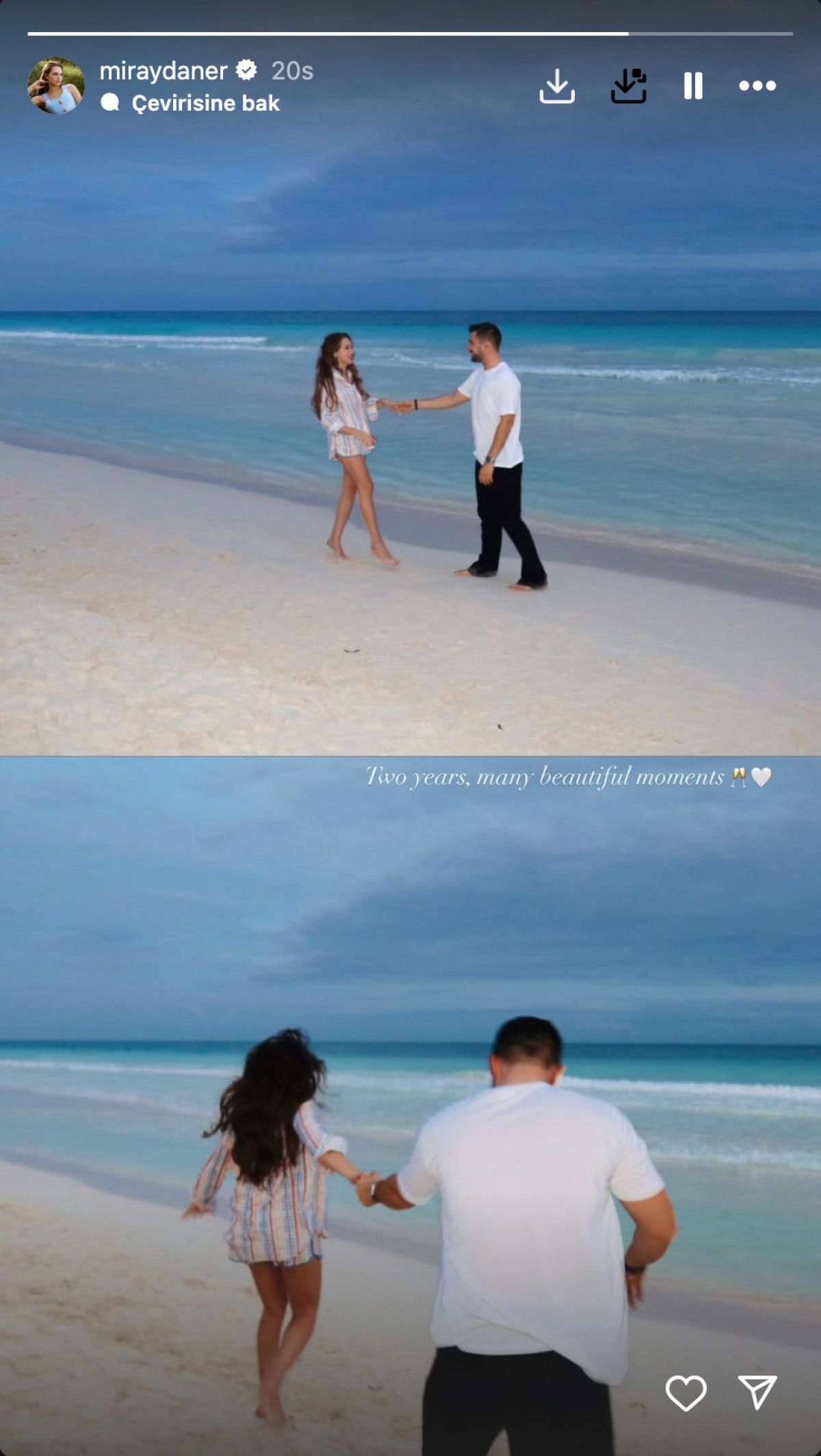 Çift, 2. yıl dönümlerini kumsalda romantik bir kareyle kutladı.