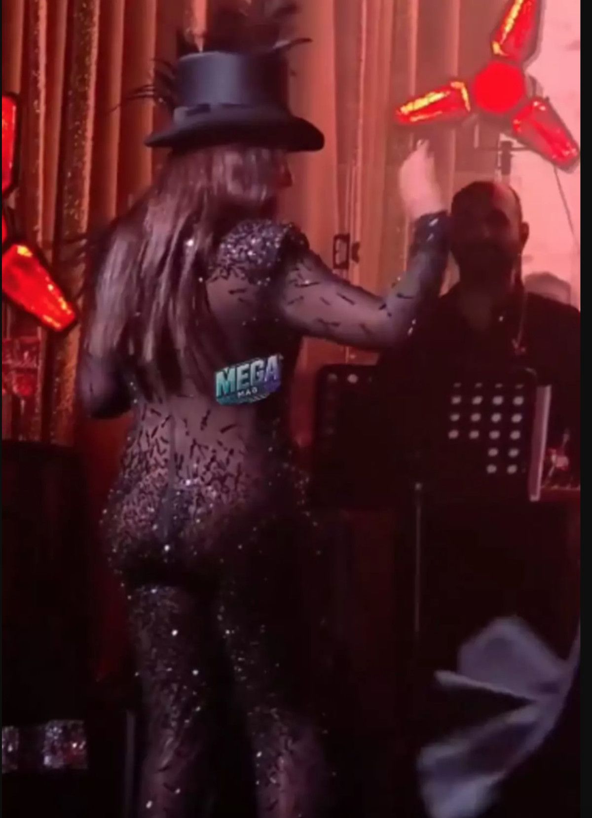 Bu açıklamadan sonra sahneye baştan aşağı transparan tulumla çıkan ünlü şarkıcı, herkesi şaşırttı.