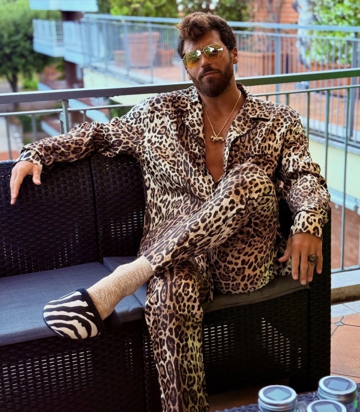 Baştan aşağı leopar desenli bir takım giyen Can Yaman’ın kombinini zebra desenli terlikle tamamladı. Sadece kıyafeti değil oturuş şekli bile yorumlara konu olan ünlü oyuncu, sosyal medyada gündem olmayı yine başardı.
