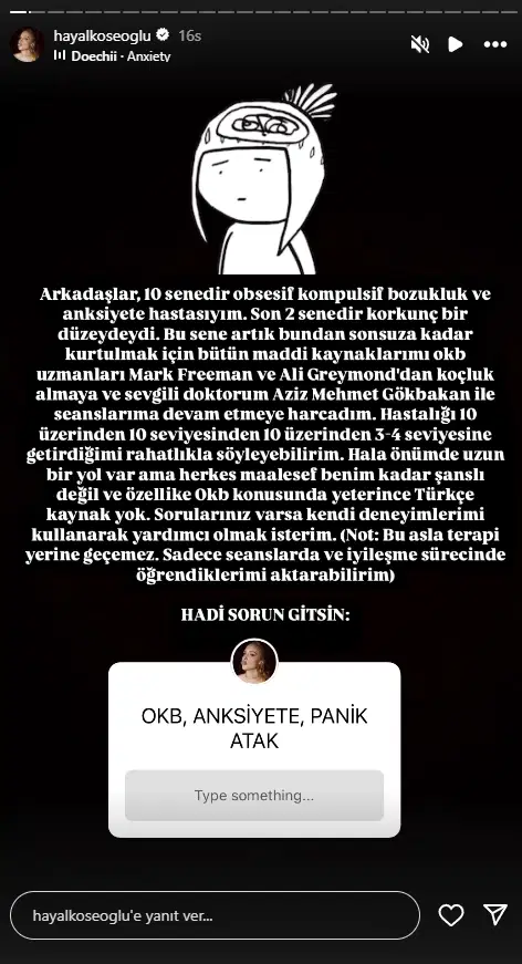 Hayal Köseoğlu’nun bu içten açıklaması, kısa sürede sosyal medyada büyük yankı uyandırdı. Pek çok takipçisi, oyuncuya cesaretinden dolayı teşekkür ederken benzer problemlerle baş etmeye çalışan kişilerden de destek mesajları geldi.