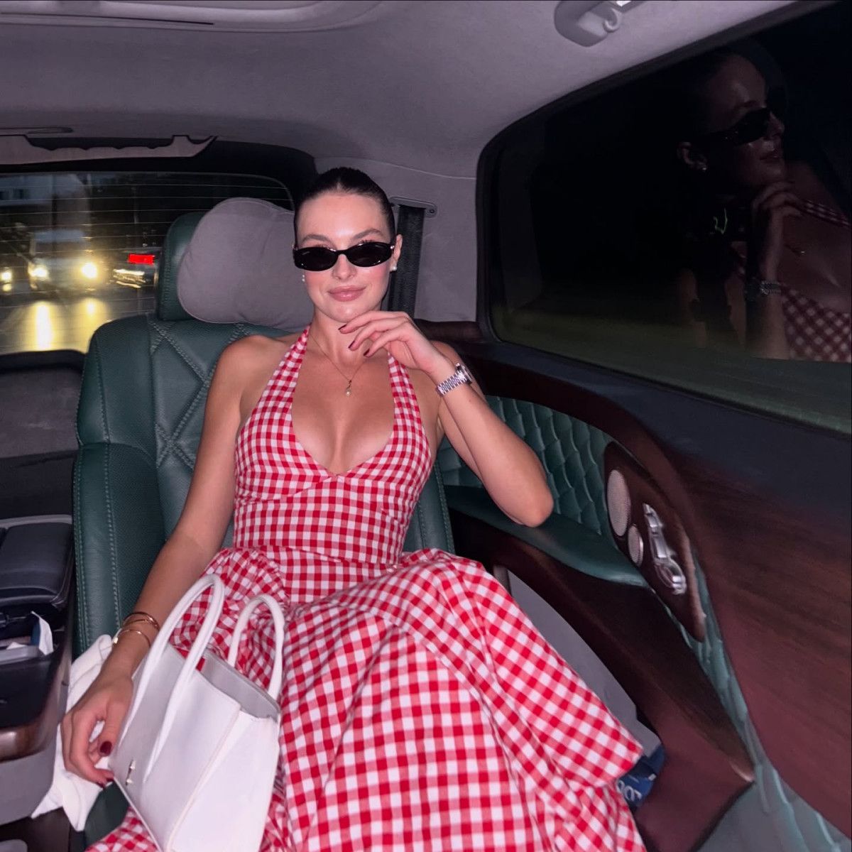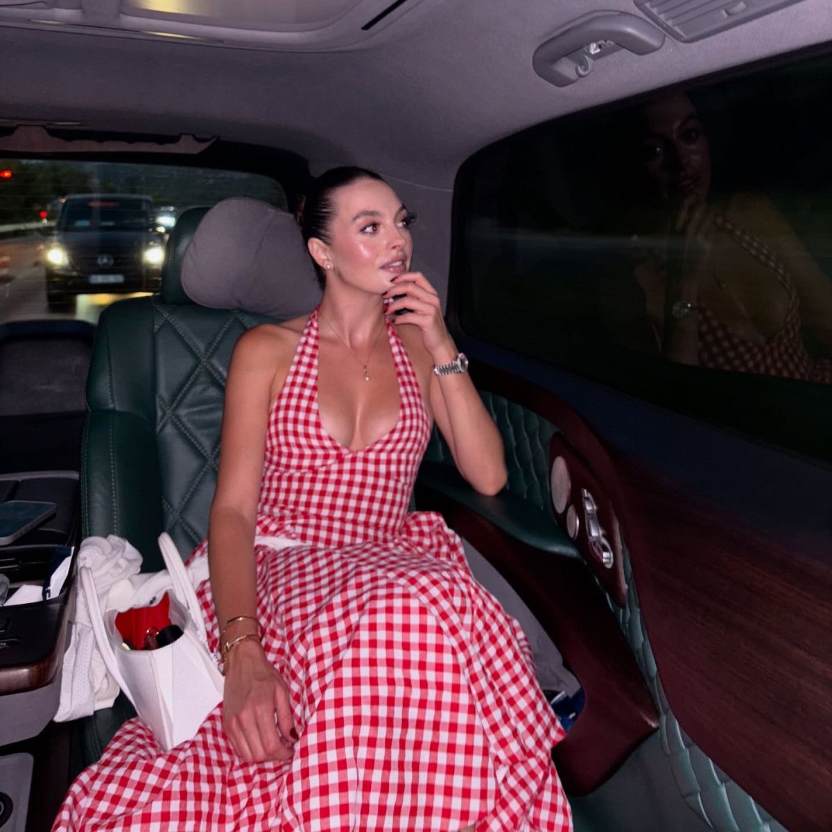 Son olarak ekoseli derin dekolteli elbise kombiniyle poz veren Melis Sezen hayranlarını mest etti.
