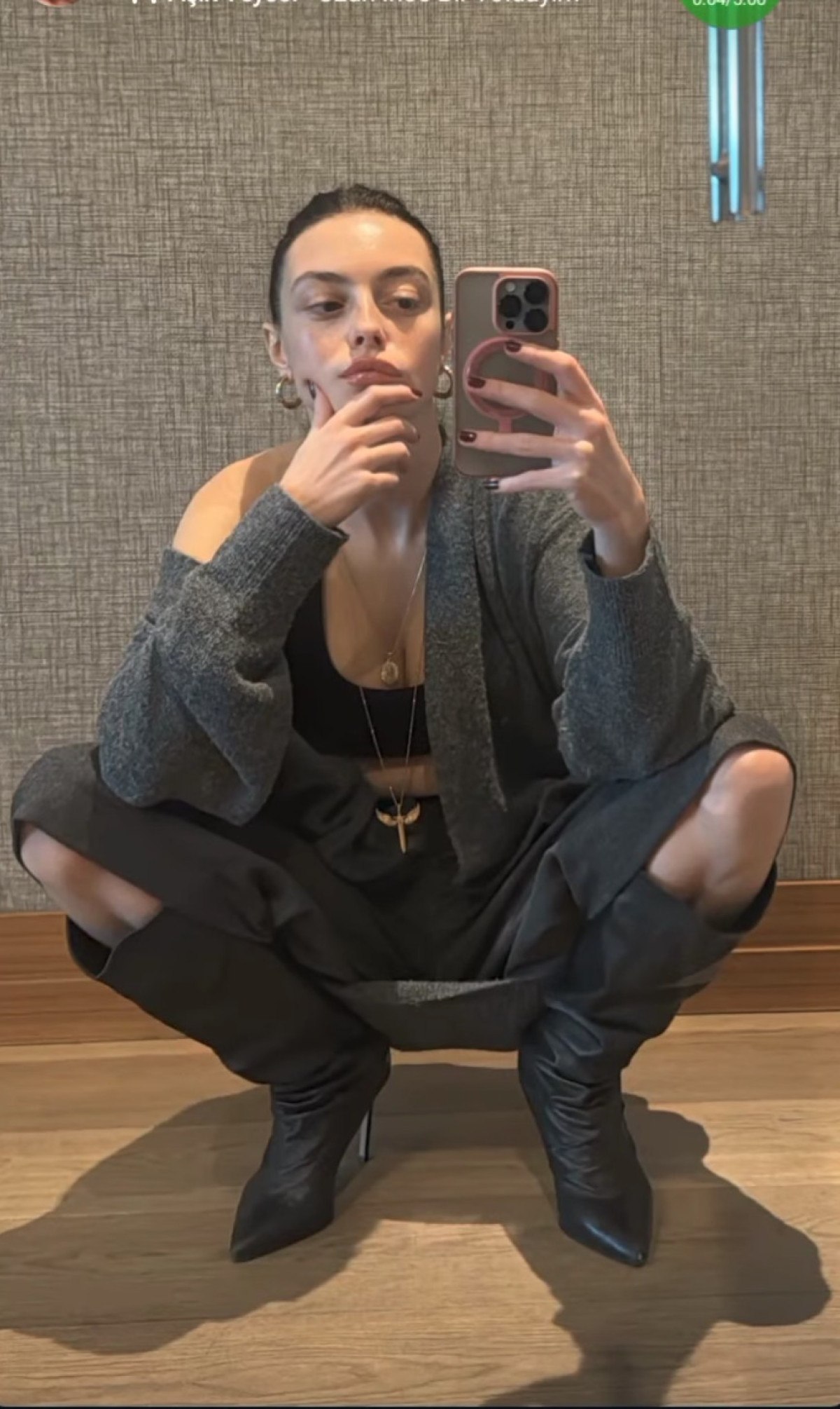 Sezen, şimdi de çömelerek verdiği pozla sosyal medyayı salladı.