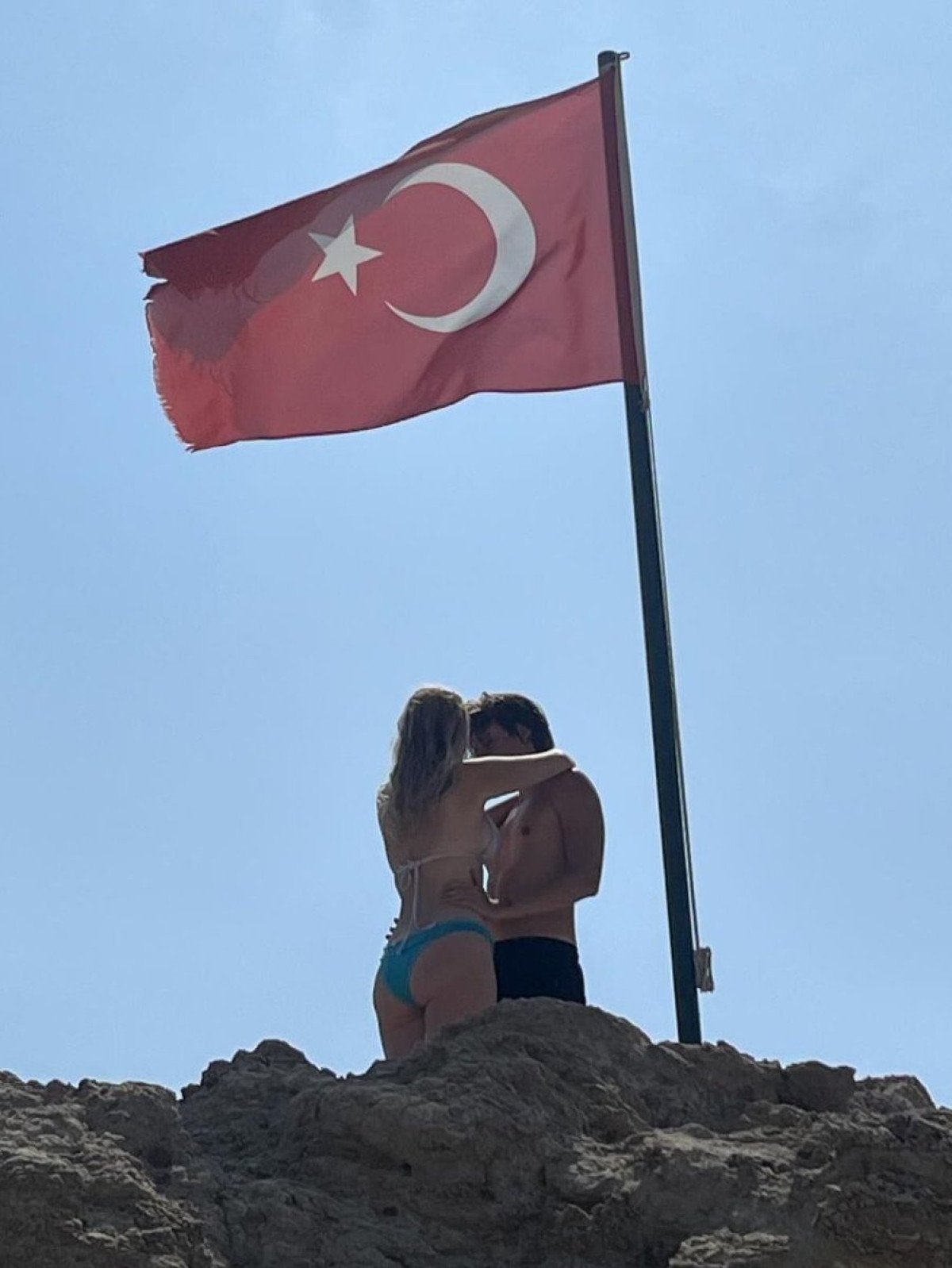 Yereli, bu kere de sevgilisiyle birlikte Türk bayrağı altında verdiği bikinili poz ile gündeme geldi. Ünlü ismin son paylaşımı toplumsal medya kullanıcıları ortasında tartışma yarattı.