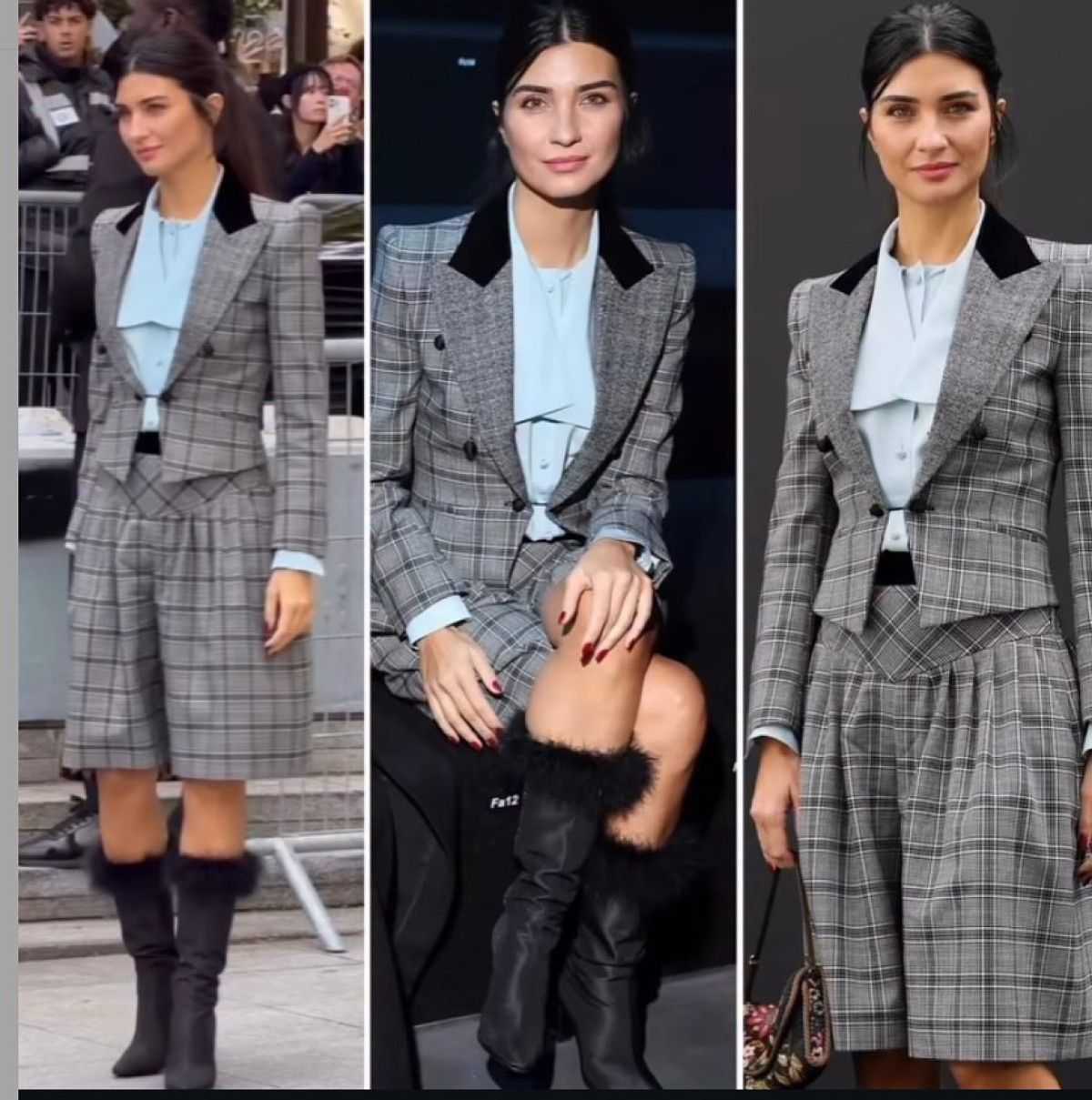 Paris Moda Haftası’nda dikkatleri üzerine çeken ünlü oyuncu, tıpkı şarkıcı Edis gibi Valentino SS26 defilesini izledi. İlk başta her şey tamamdı, Tuba’nın etekli ekoseli takımı ilk görüşte beğenildi.
