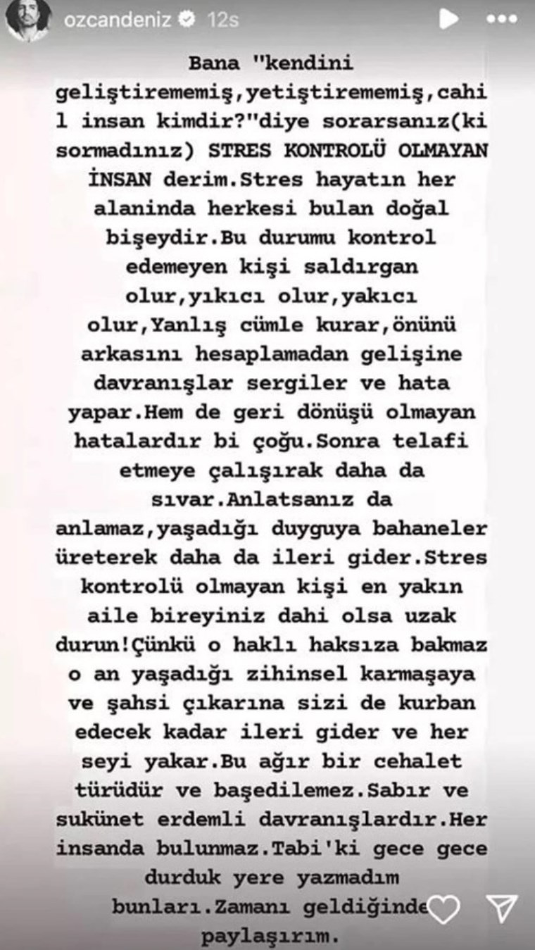 Deniz, sosyal medya hesabından yaptığı ilk paylaşımda şu ifadelere yer verdi: