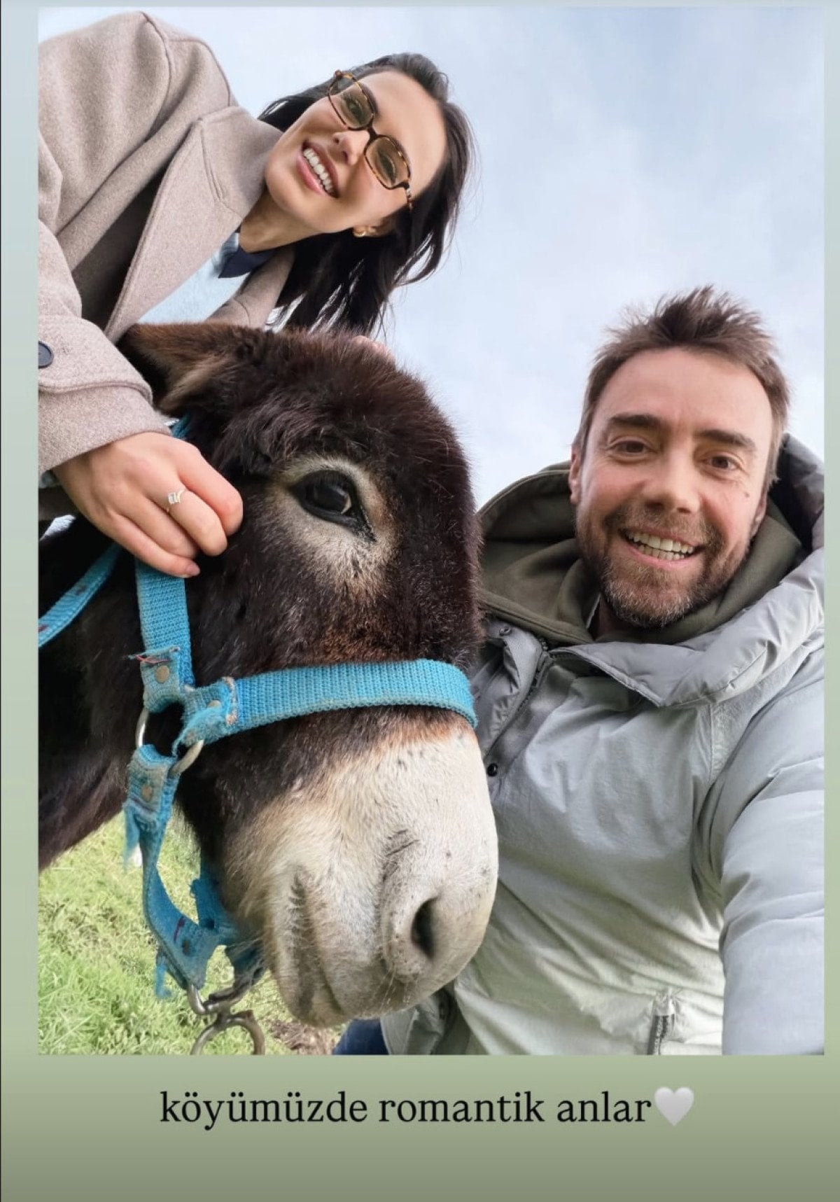 Set arasında birlikte vakit geçiren ikili, köy ortamında bir eşekle verdikleri pozları sosyal medya hesaplarından paylaştı.