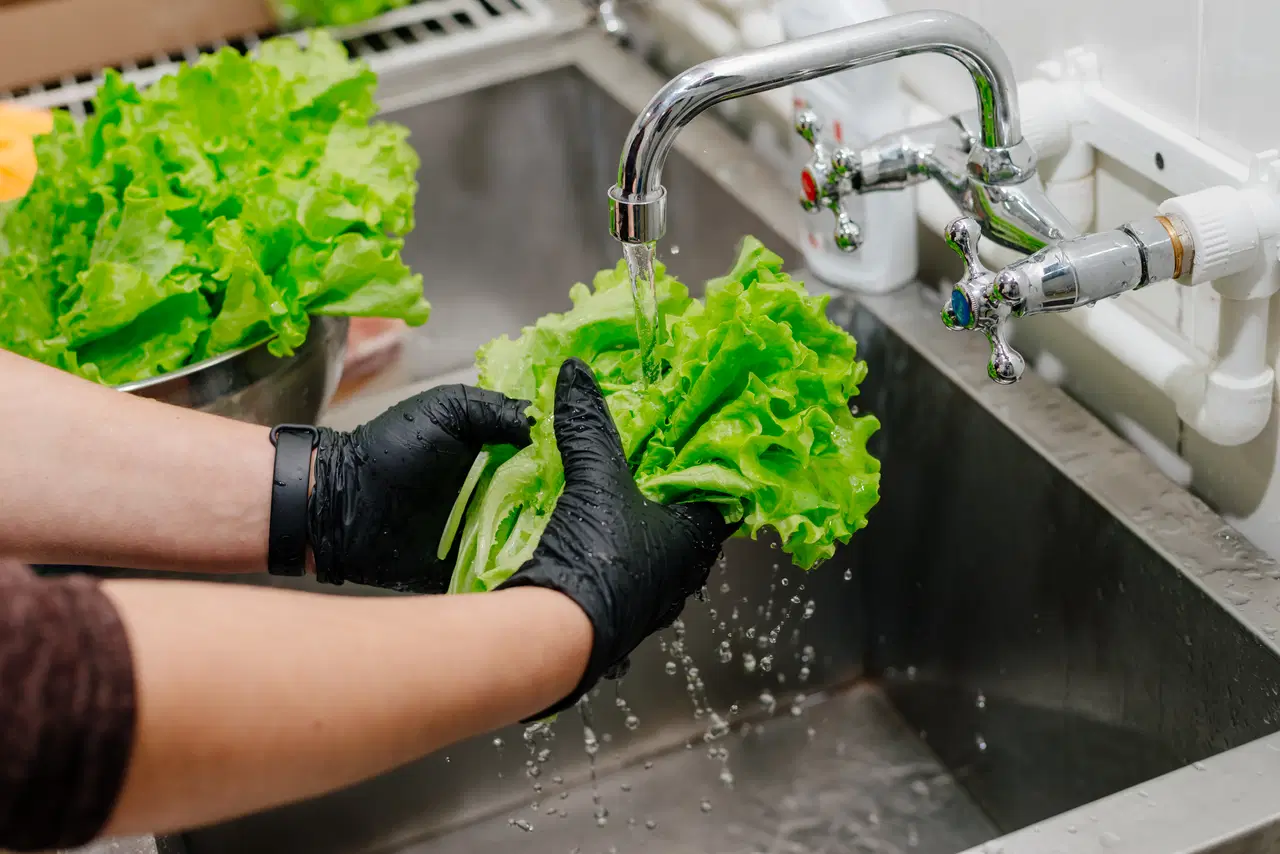 Sebze ve meyveleri toplu halde değil, tek tek ve akan musluk suyunun altında yıkayın. Özellikle yapraklı yeşilliklerin arasında saklanan kirler için dikkatli olun.