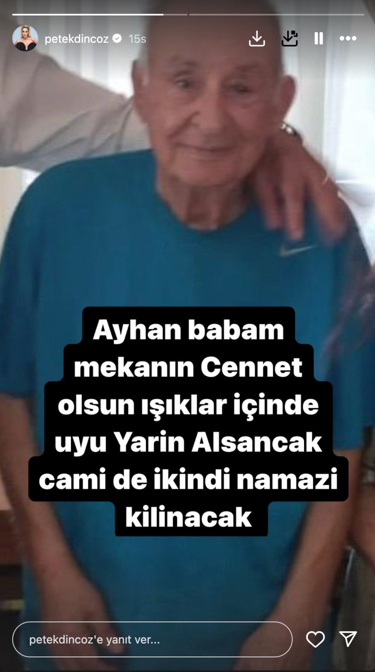 Dinçöz, “Ayhan babam mekanın cennet olsun. Işıklar içinde uyu. Alsancak Camii’nde ikindi namazı kılınacak” ifadelerini kullandı.