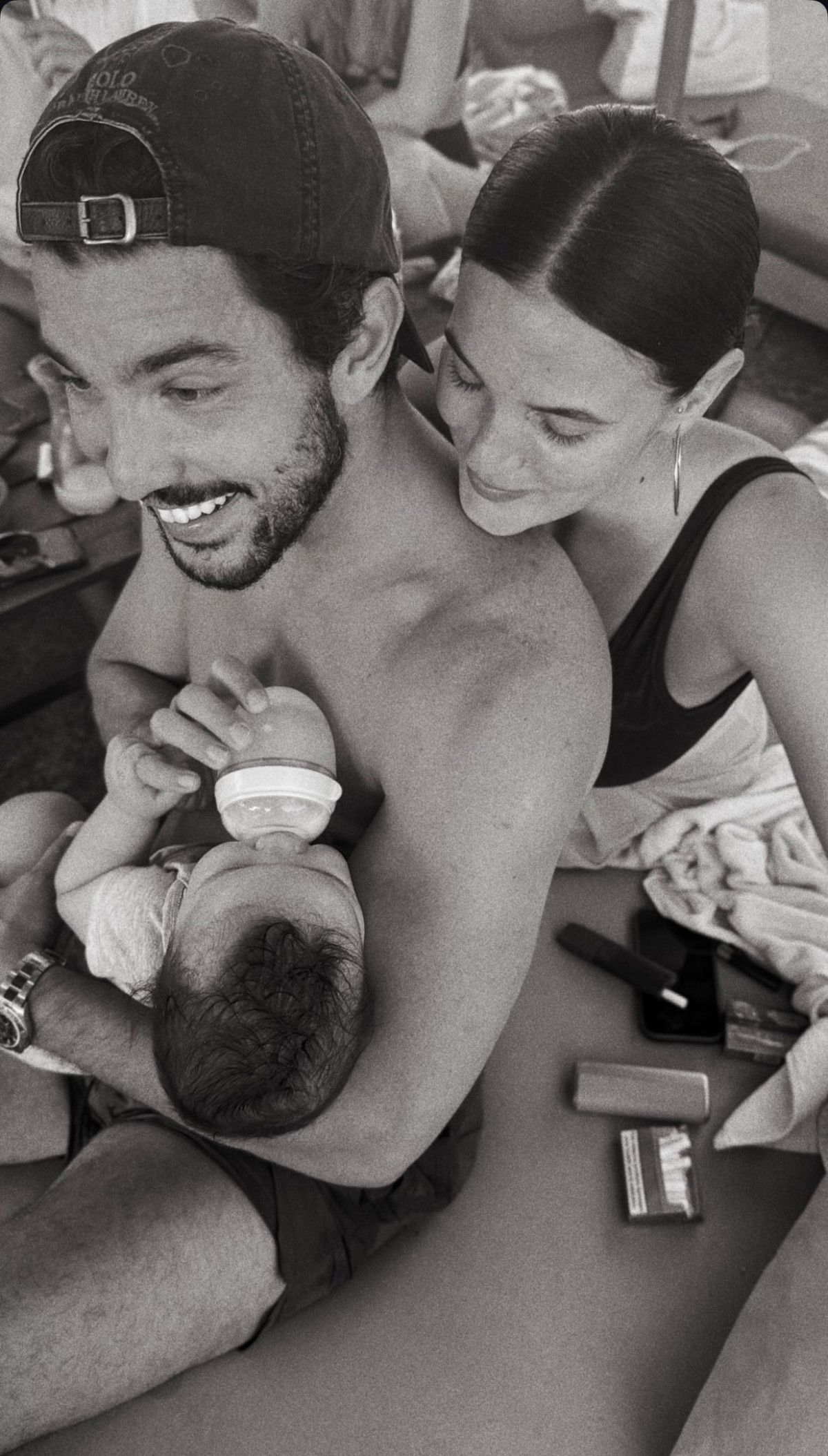 Ünlü oyuncu, sahil kenarında oğluyla ilgilenen eşiyle pozlarını paylaştı.