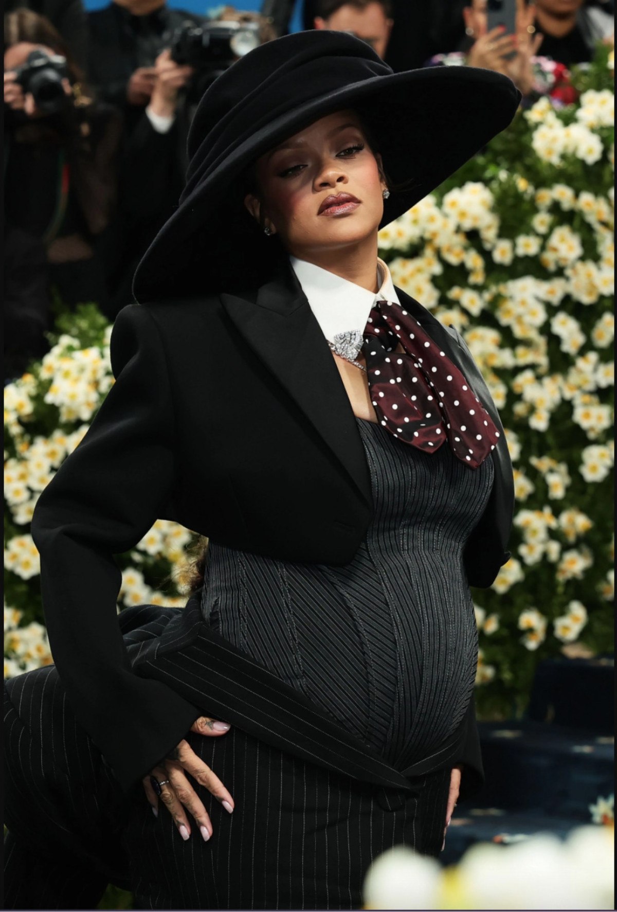 2 çocuğu bulunan Rihanna, büyüyen karnıyla poz vererek galada 3. kez hamile olduğunu duyurdu.