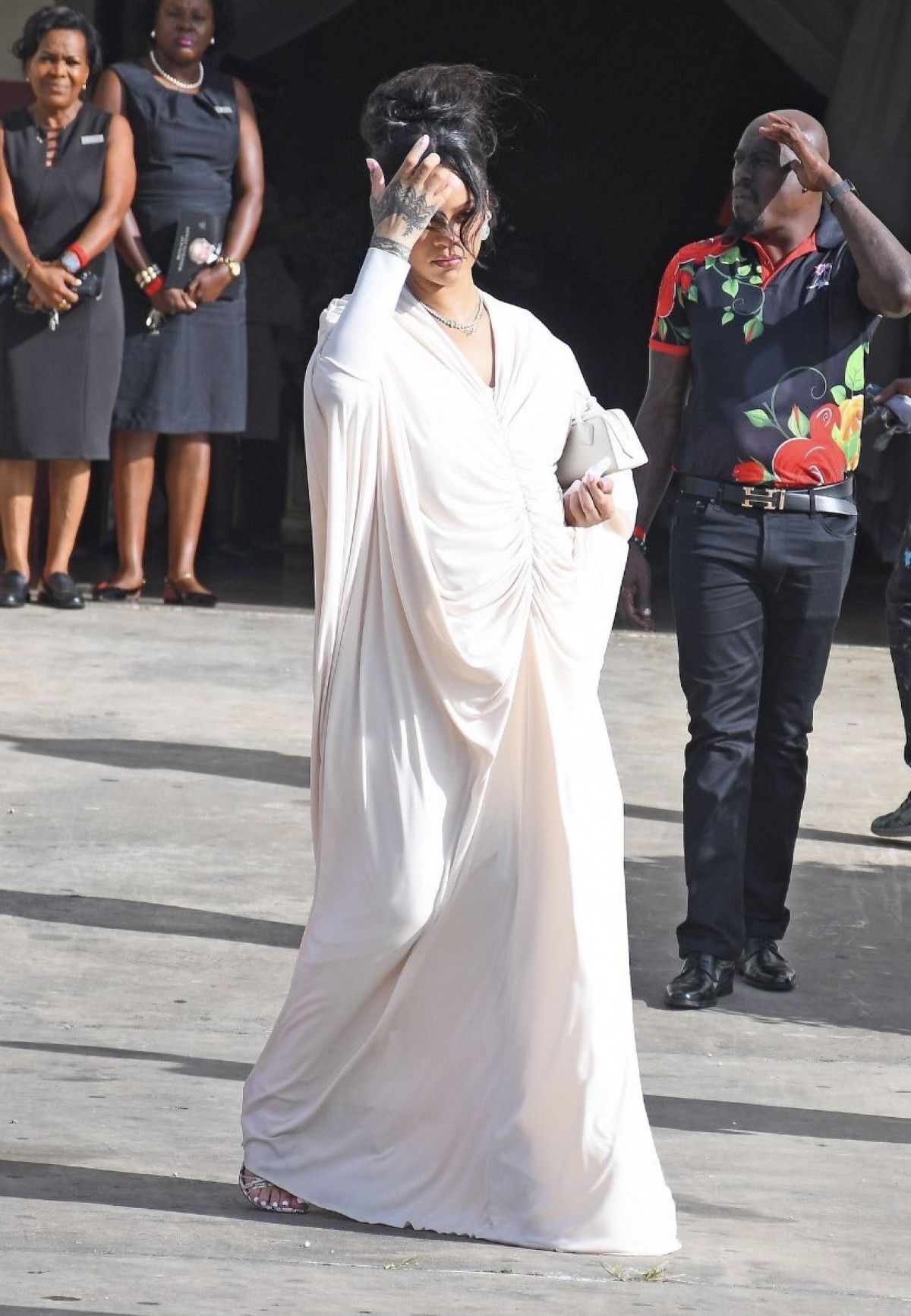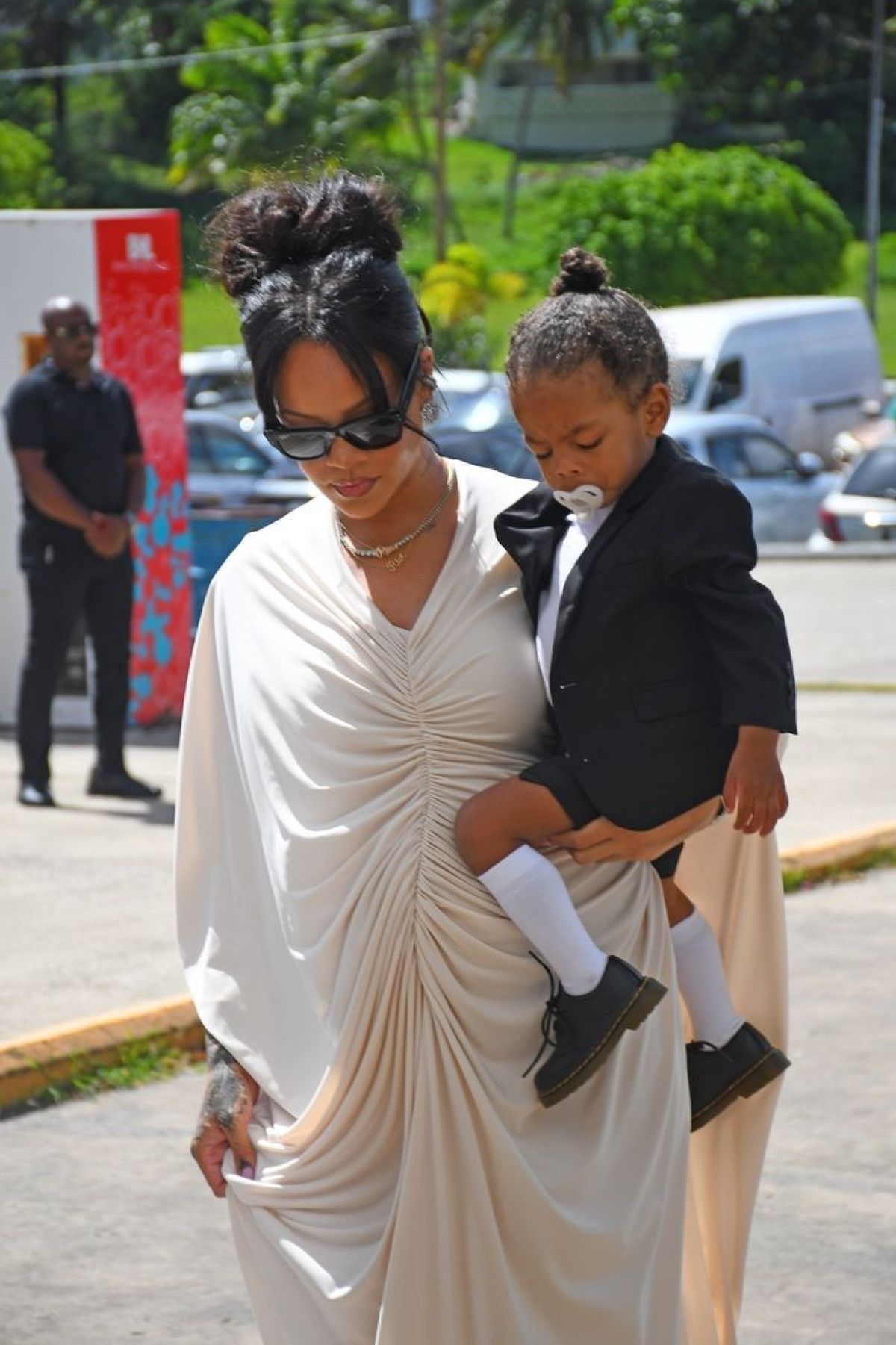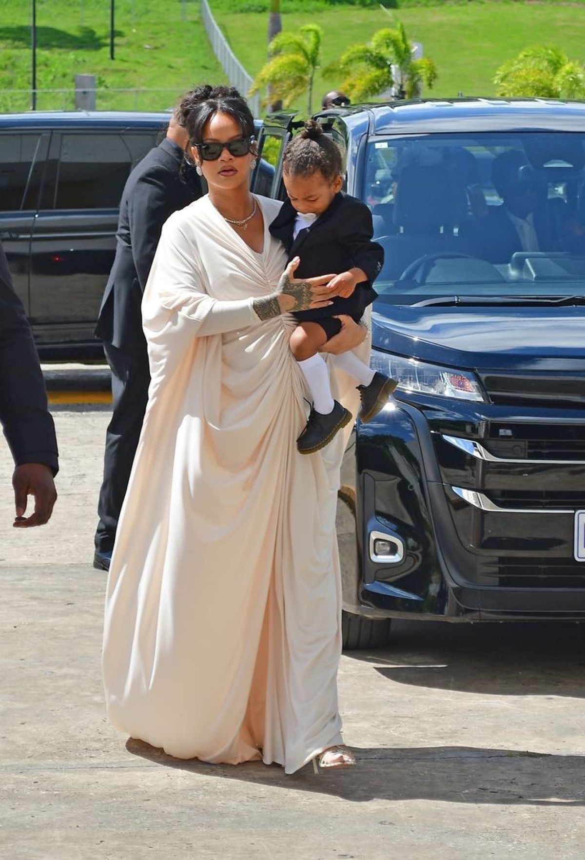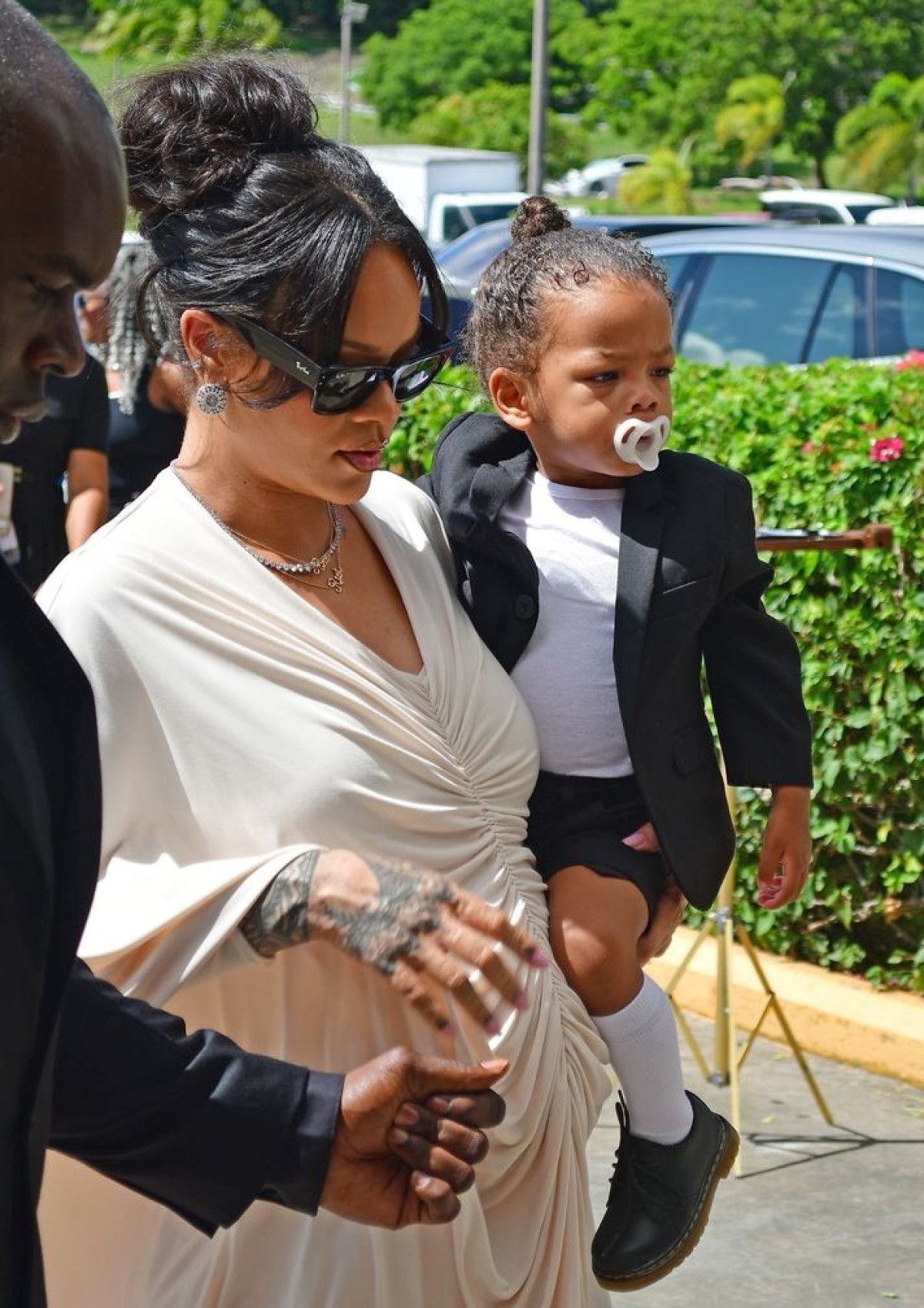 Bu törene beyazlar içerisinde katılan Rihanna, iki oğlunu da yanında götürdü.