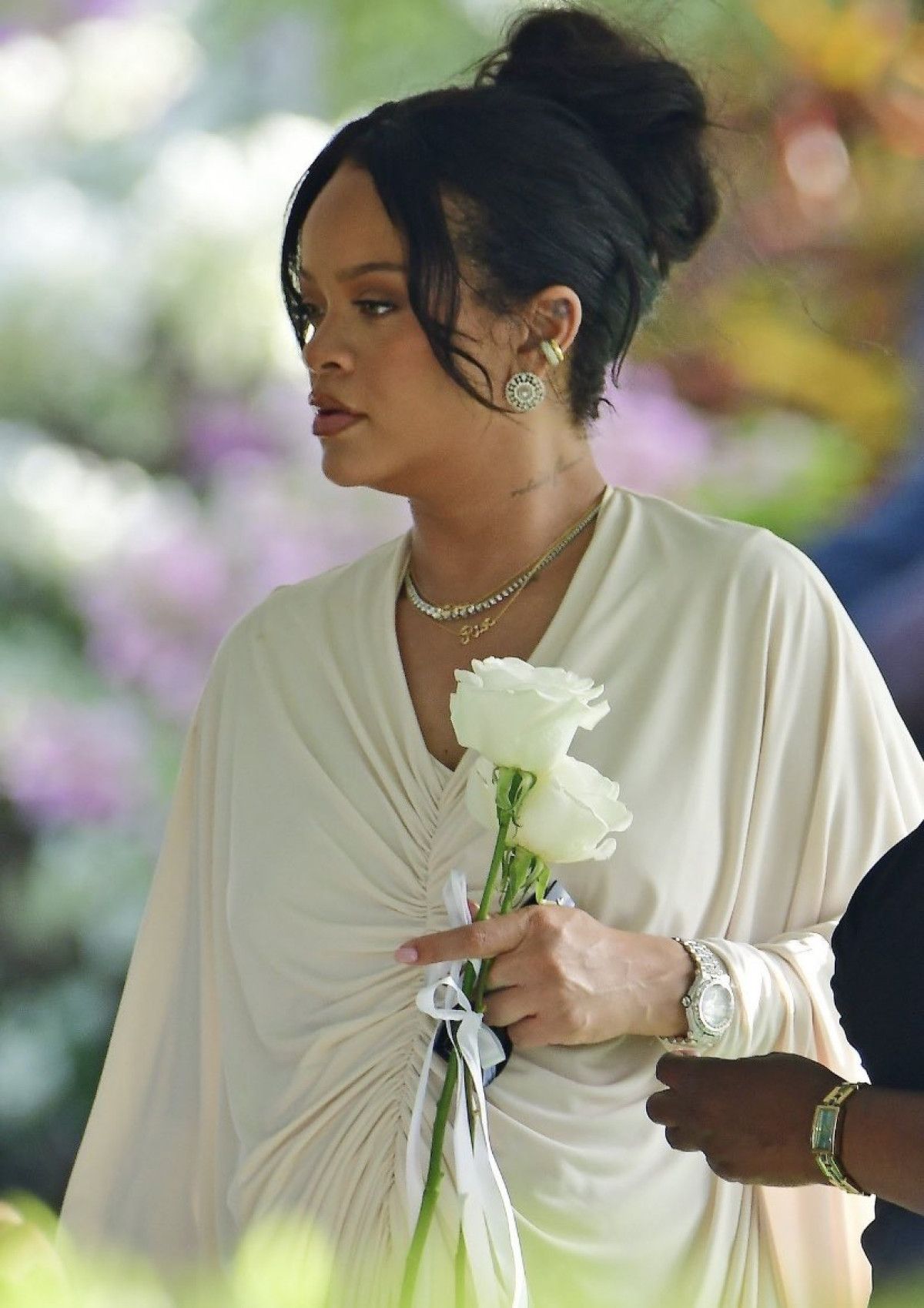 Üçüncü çocuğuna hamile olan Rihanna, sevgilisi ASAP Rocky ve iki çocuğuyla birlikte cenazeye katılmak üzere Barbados’a gitti.