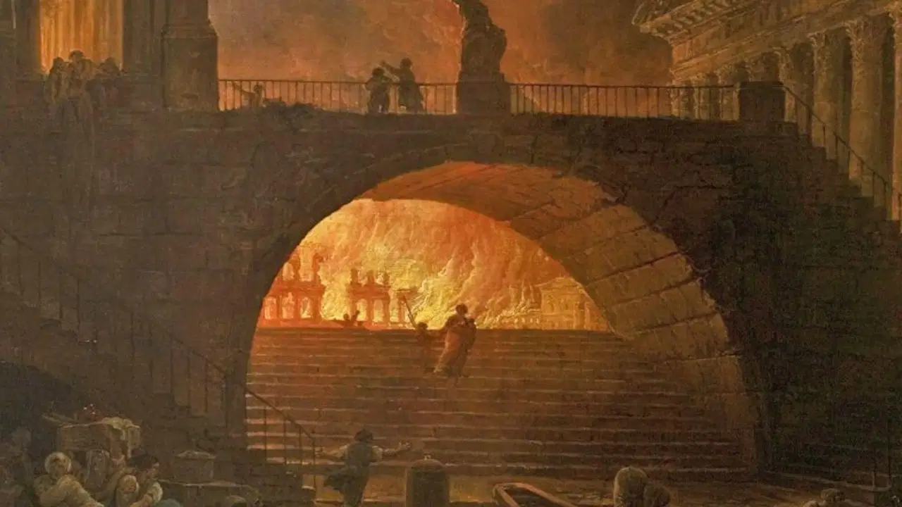 MS 64 yılında Roma’da büyük bir yangın çıktı ve şehrin büyük bölümü kül oldu. Yangının Nero’nun isteğiyle çıkarıldığı iddiaları ortaya atıldı. Rivayetlere göre yangın sürerken Nero, sarayında şarkı söylüyordu. Kesin kanıt olmasa da bu söylentiler, onun kötü şöhretini daha da artırdı.