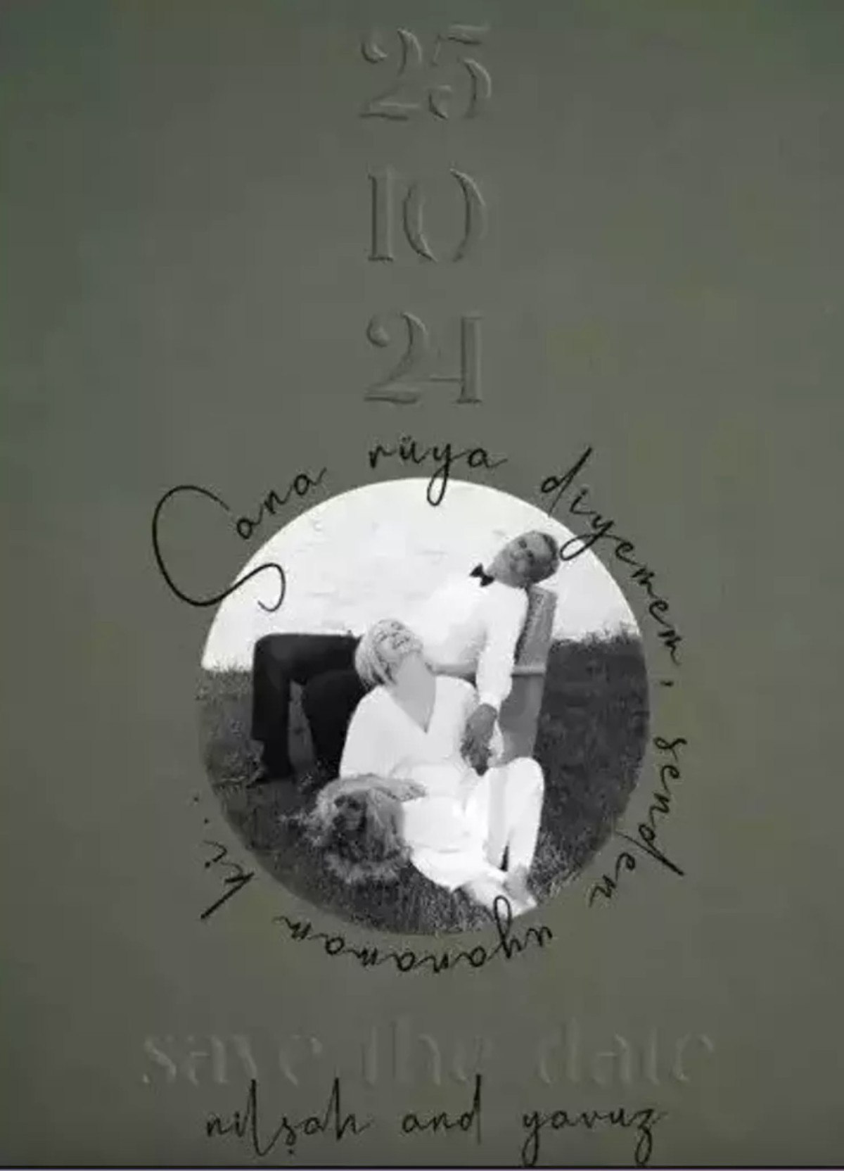 Davetiyenin sadeliği gözlerden kaçmadı. Gösterişten uzak bir düğün yapacak olan çift davetiyeye “Sana rüya diyemem, senden uyanamam ki” notunu düştü.