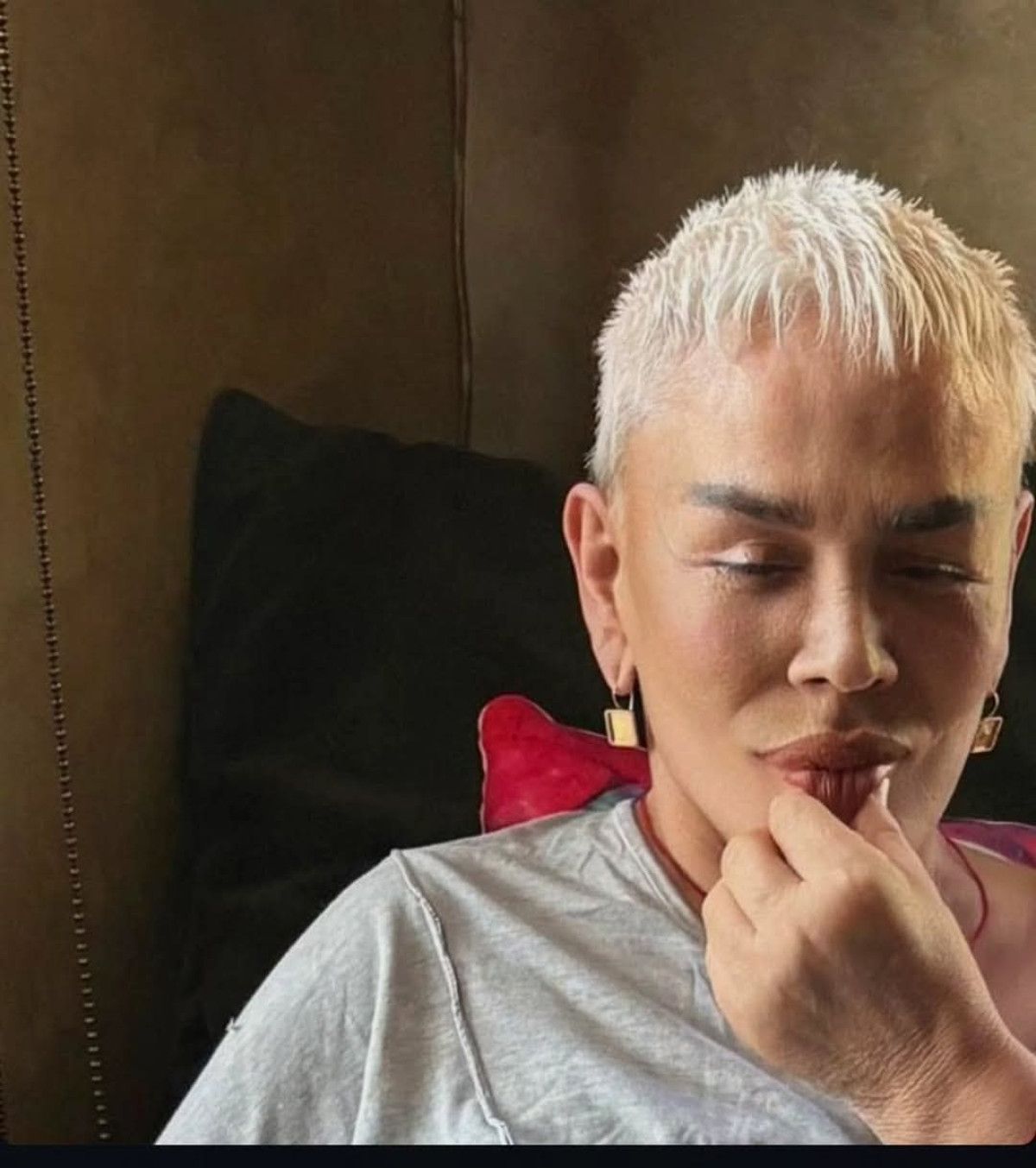 Aksu’nun kısa ve beyaz saçları dikkat çekti.