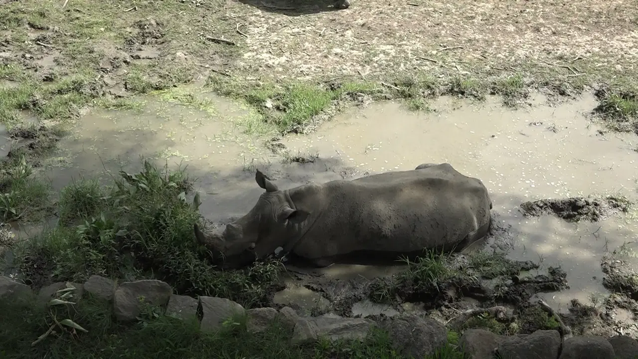 Hayvanat bahçesindeki diğer hayvanların bazıları sıcaktan korunmak için sürekli gölge alanları seçerken, beyaz gergedanların ise çamurlu su birikintisine girerek serinlemeye çalışması dikkat çekti.