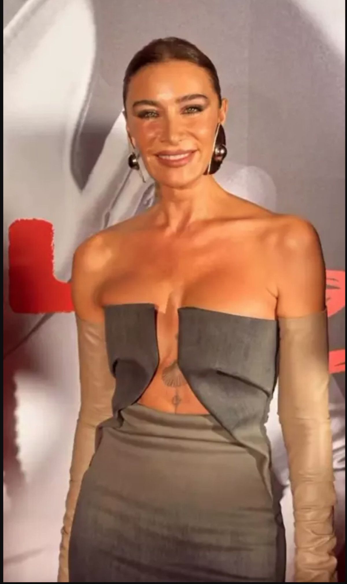 Ünlü şarkıcısının şarkılarından çok tercih ettiği cesur dekolteli gri elbisesiyle gecenin en çok konuşulan ismi oldu.