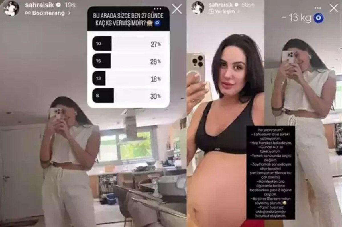 Takipçileriyle sık sık soru-cevap yapan Sahra Işık, son olarak “27 günde kaç kilo vermişimdir?” sorusunu yöneltmişti. Bebeğini kucağına aldıktan sonra sağlıklı bir şekilde beslenen ve yediklerine dikkat eden ünlü fenomen, paylaşımında soruya fotoğrafla yanıt vererek doğum sonrası 13 kilo verdiğini açıkladı.