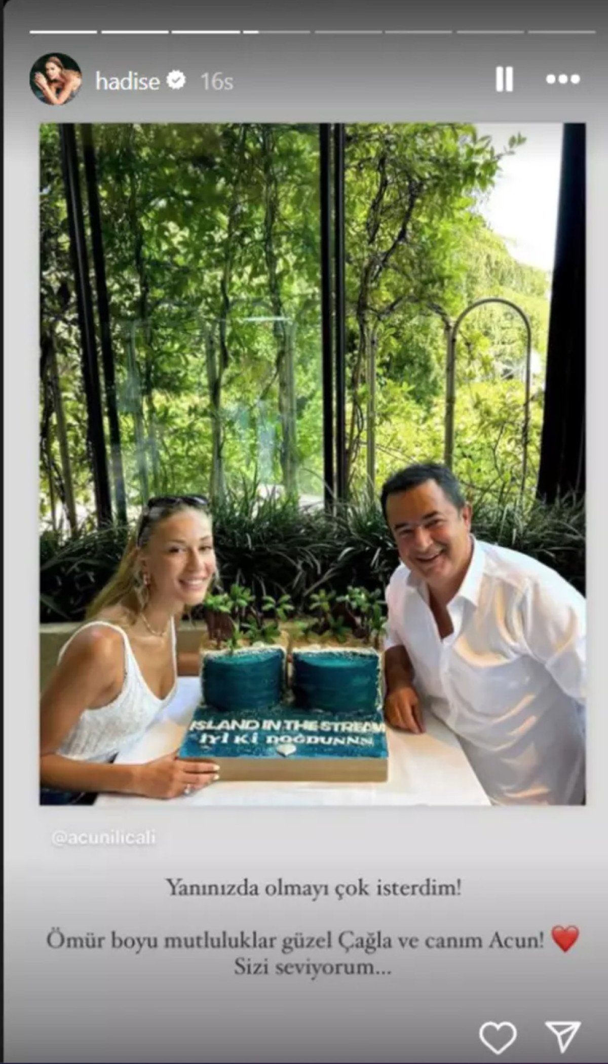 Hadise Acun Ilıcalı ve Ayça Çağla’yı paylaşarak “Yanınızda olmayı çok isterdim. Ömür boyu mutluluklar sizi seviyorum” dedi.