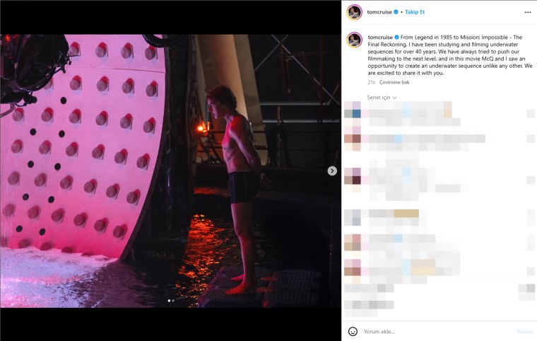 Cruise, su altı sahnesinin yıllara yayılan bir deneyimin ürünü olduğunu belirterek, “1985 yapımı Efsane’den (Legend) bugüne, 40 yılı aşkın süredir su altı sahneleri üzerine çalışıyoruz. Sinemada çıtayı her zaman bir üst seviyeye taşımaya çalıştık. Bu filmde, McQ’yla (Christopher McQuarrie) birlikte, bugüne kadar benzeri görülmemiş bir su altı sahnesi yaratma fırsatımız oldu. Bunu sizinle paylaşmak için sabırsızlanıyoruz,” şeklinde açıklama yaptı.