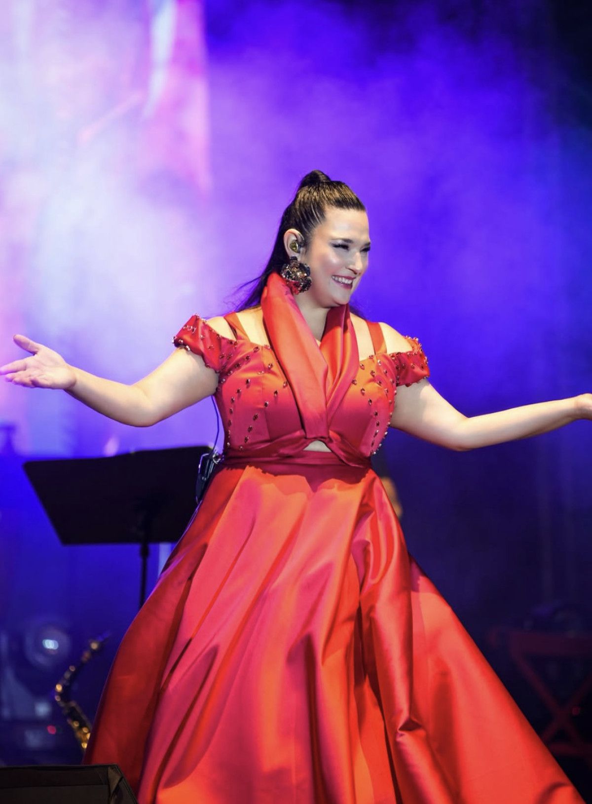 Ayakkabısının topuğunun elbisesine takılmasıyla yaşanan düşüşün ardından görevlilerin yardımıyla ayağa kalkan Kandemir, ilk şarkısını söylemeye başladı.