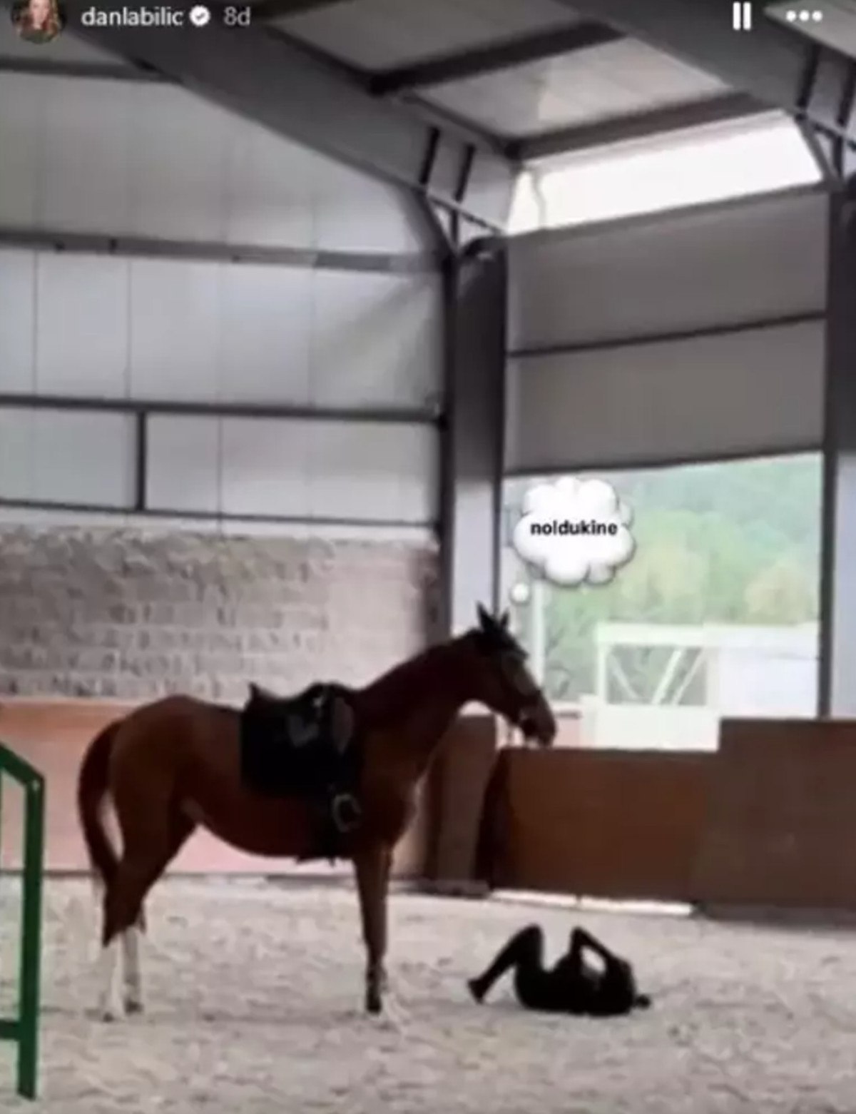 Atlara olan düşkünlüğünü sık sık dile getiren fenomen isim, ata bindiği sırada düştüğü anları paylaştı. Sakince ata bindiği sırada bir anda Bilic, kendini yerde buldu.