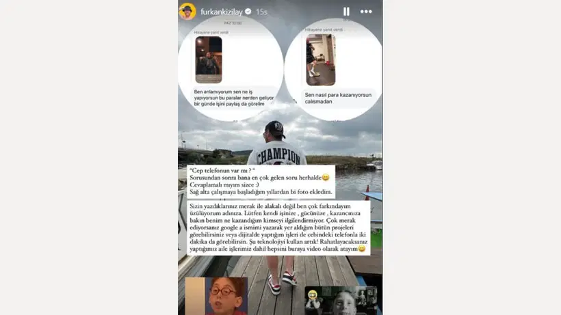 “Cep telefonun var mı? sorusundan sonra bana en çok gelen soru herhalde… Cevaplamalı mıyım sizce… Sağ alta çalışmaya başladığım yıllardan bir foto ekledim. Sizin yazdıklarınız merak ile alakalı değil ben çok farkındayım, üzülüyorum adınıza. Lütfen kendi işinize, gücünüze, kazancınıza bakın benim ne kazandığım kimseyi ilgilendirmiyor. Çok merak ediyorsanız Google’a ismimi yazarak yer aldığım bütün projeleri görebilirsiniz veya dijitalde yaptığım işleri de cebindeki telefonla iki dakika da görebilirsin. Şu teknolojiyi kullan artık! Rahatlayacaksanız yaptığımız aile işlerimiz dahil hepsini buraya video olarak atayım.”