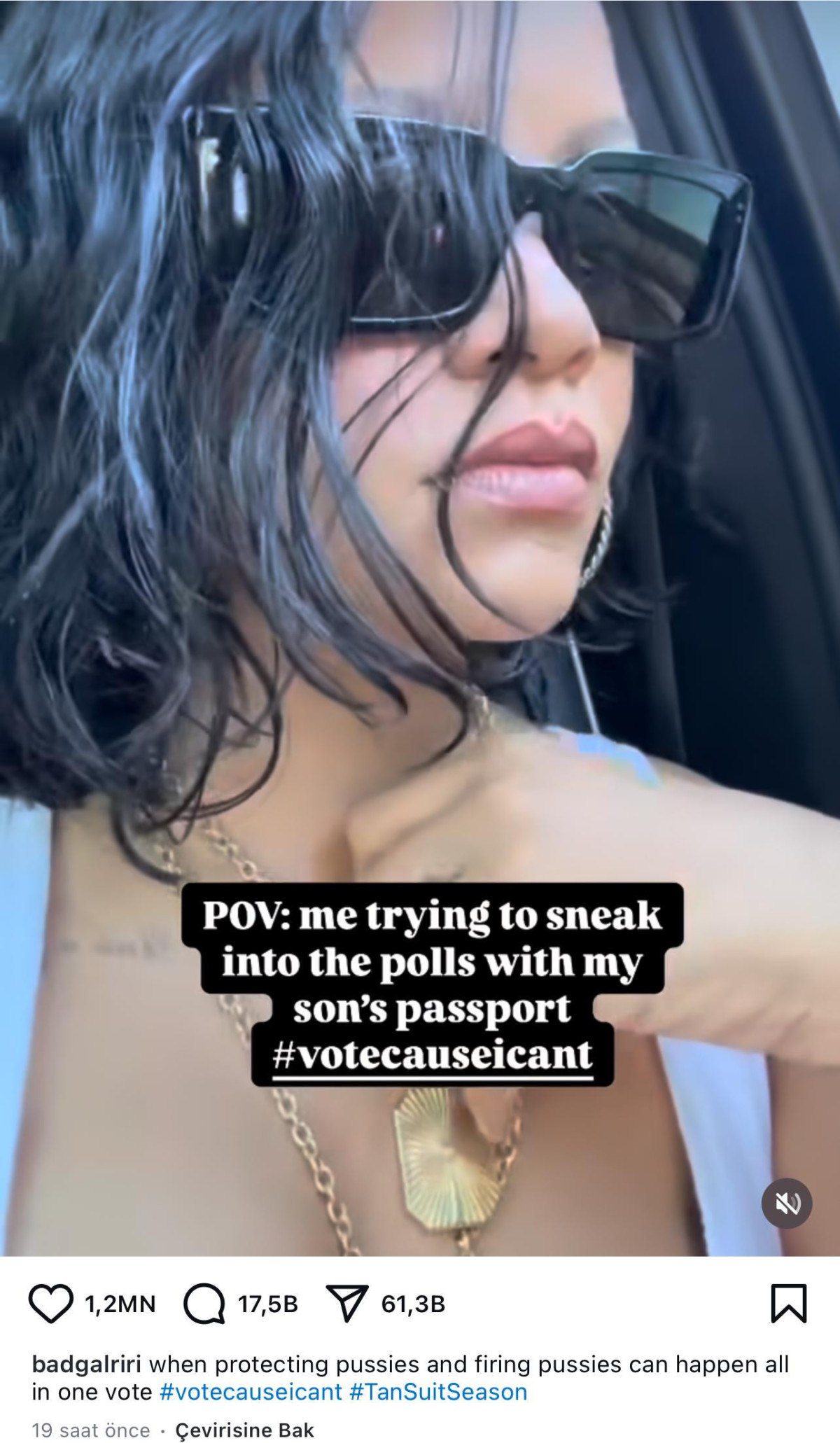 Oylama süreci devam ederken dünyaca ünlü şarkıcı Rihanna, hayranlarına seçimle ilgili çağrıda bulundu.