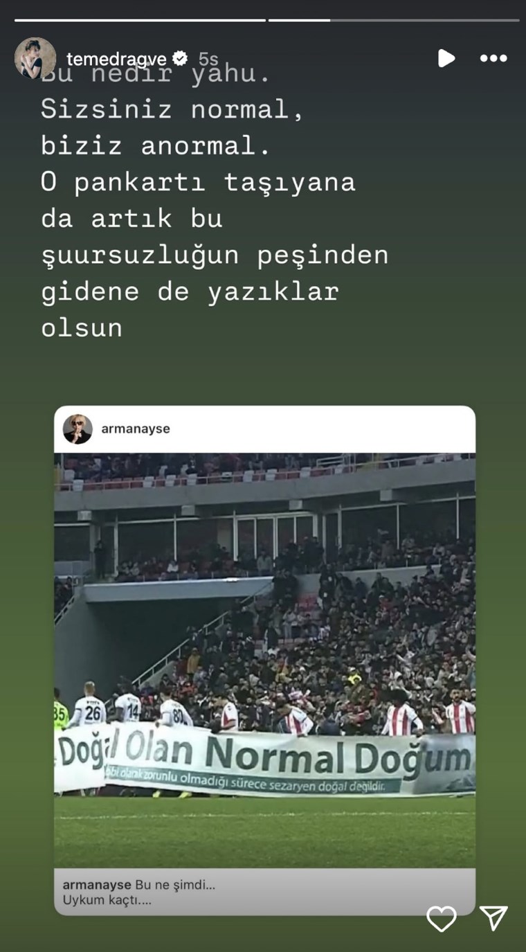 13 Nisan Pazar akşamı oynanan Süper Lig maçında, Sivassporlu futbolcuların sahaya “Doğal olan normal doğum” yazılı pankartla çıkması büyük tartışmalara yol açtı. Sağlık Bakanlığı tarafından hazırlanan ve kamu spotu olarak lanse edilen bu pankart, maçta futbolcular tarafından taşındığında sosyal medyada infial yarattı.
