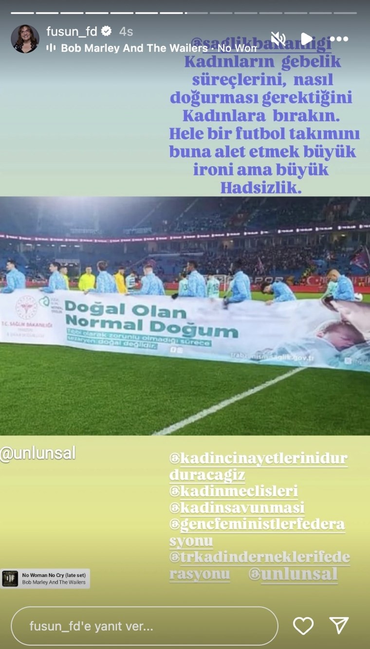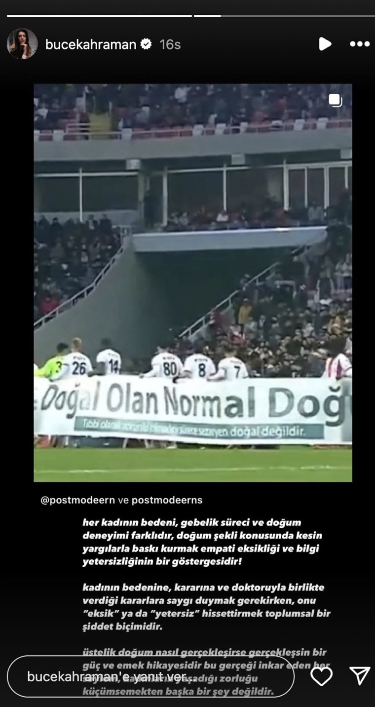 Pankartın, erkek futbolcular tarafından taşınması, başta kadın izleyiciler olmak üzere birçok kişiyi kızdırdı. Sosyal medyada yapılan yorumlarda, “O zaman siz öyle doğurursunuz” ve “Bu nasıl bir akıl?” gibi ifadelerle mesajın anlamı sorgulandı. Birçok kişi, erkek egemen bir spor dalında, erkek futbolcuların kadın bedenine dair bir tercih hakkında kamu spotu taşımalarının “dayatmacı” ve “ayarsız” olduğunu belirtti.