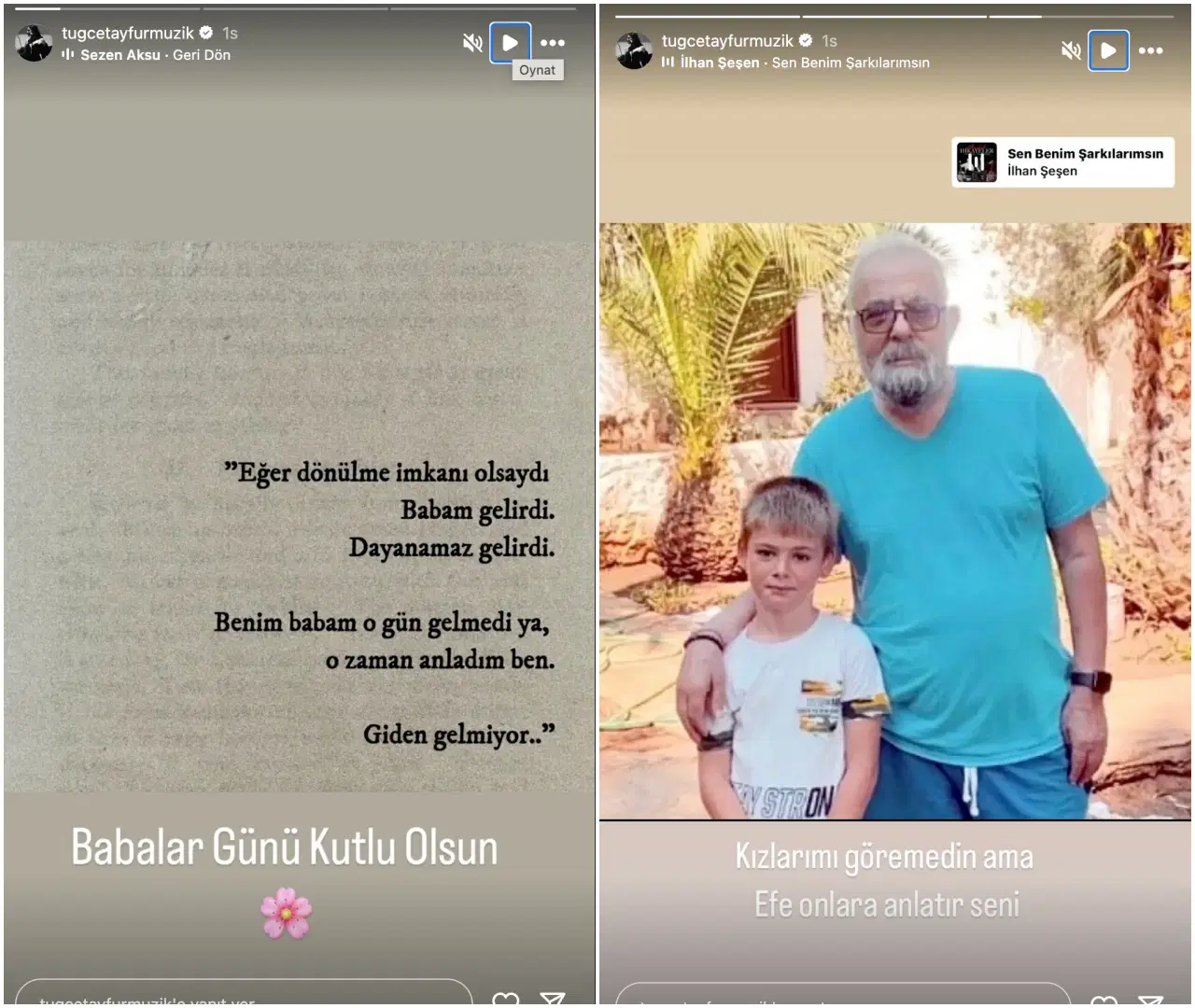 Tuğçe Tayfur da merhum babası Ferdi Tayfur’un Babalar Günü’nü oğlu Efe ile pozuyla kutladı. Ünlü isim, paylaşımına “Kızlarımı göremedim ama Efe onlara anlatır seni” notunu düştü.