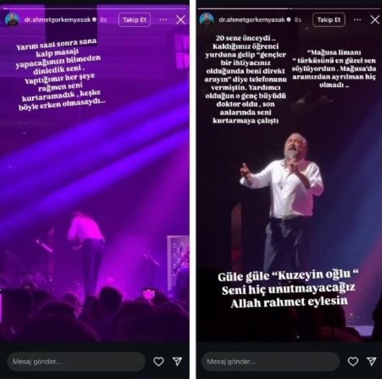 Konserde çektiği videoya duygusal bir not ekleyen Yasak, “20 sene önceydi… Kaldığımız öğrenci yurduna gelip ‘Gençler, bir şeye ihtiyacınız olduğunda beni direkt arayın’ diye telefonunu vermiştin. Yardımcı olduğun o genç büyüdü, doktor oldu; son anlarında seni kurtarmaya çalıştı” ifadelerini kullandı.