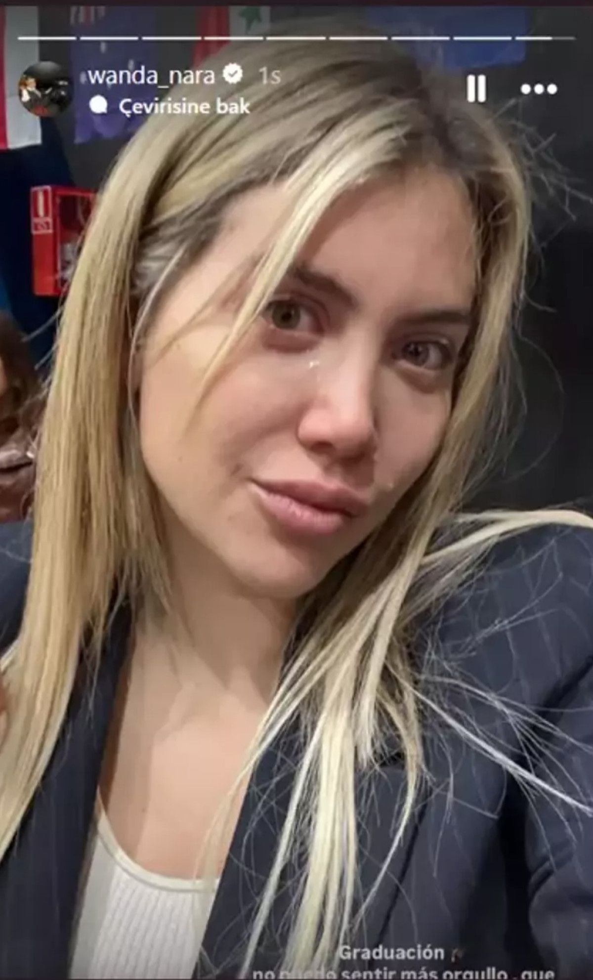 Wanda Nara gözyaşları içinde kendisinin bir fotoğrafını Instagram hesabından paylaştı. Bu sefer spekülasyon yaratmaktan kaçındı ve gözyaşlarının sebebini çok net bir şekilde açıkladı. Nara kızının mezuniyet törenine katıldığını söyledi.